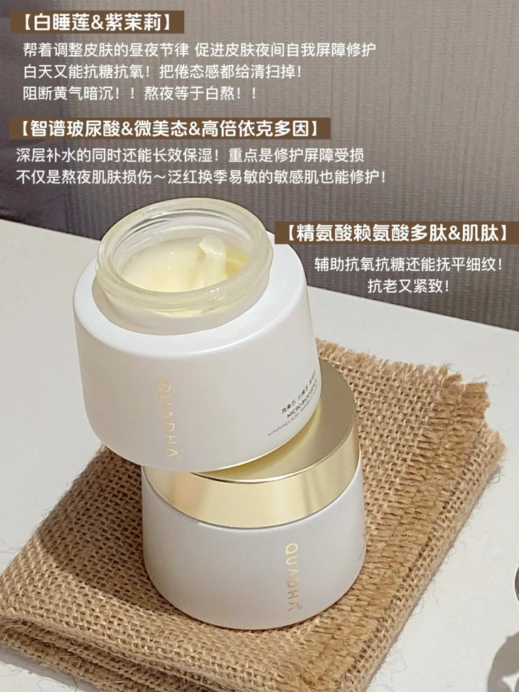 帮着调整皮肤的昼夜节律 促进皮肤夜间自我屏障修护,白天又能抗糖抗氧!