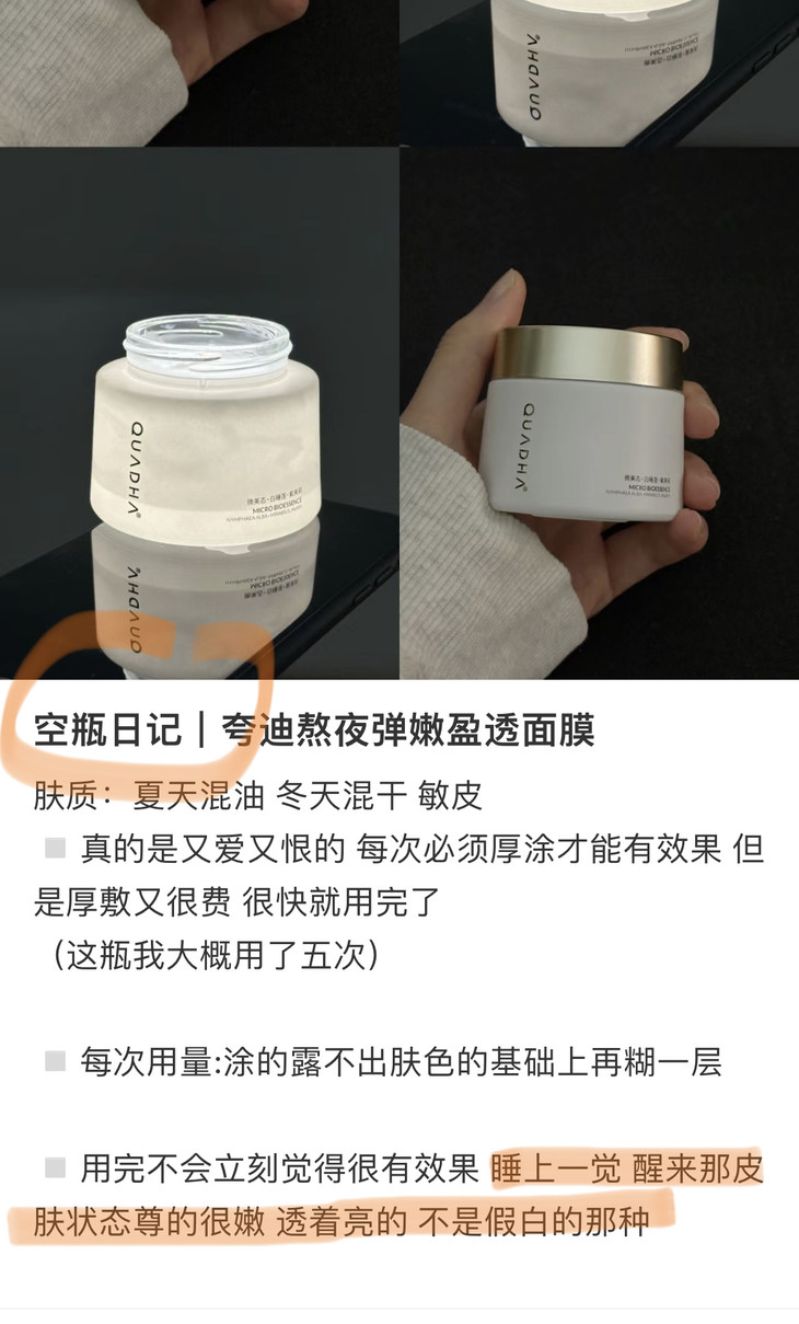 隔天起来皮肤透亮细腻!