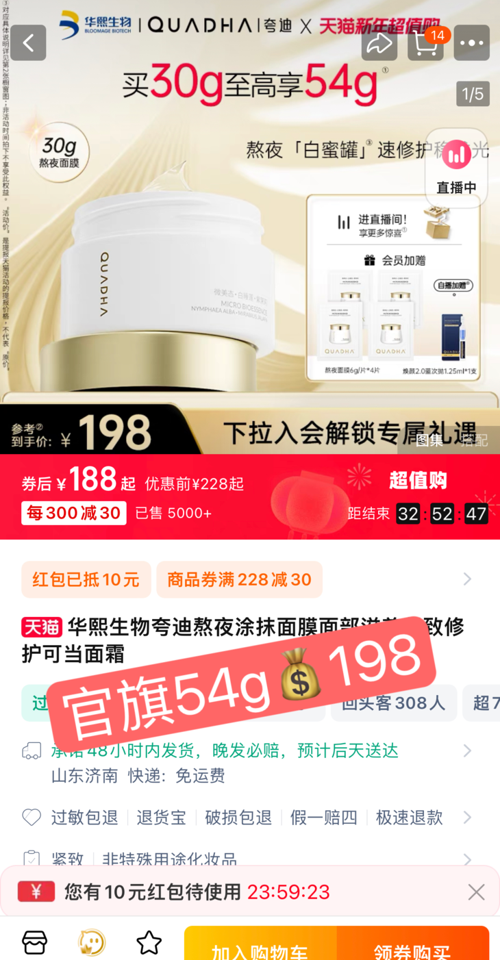 紧急捡漏‼39.9💰1瓶‼夸迪熬夜面膜50g