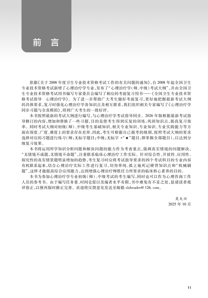 2026心理治疗学同步习题与全真模拟 全国卫生专业技术资格考试习题集丛书 吴大兴 适用专业 心理治疗(师、中级)人民卫生出版社