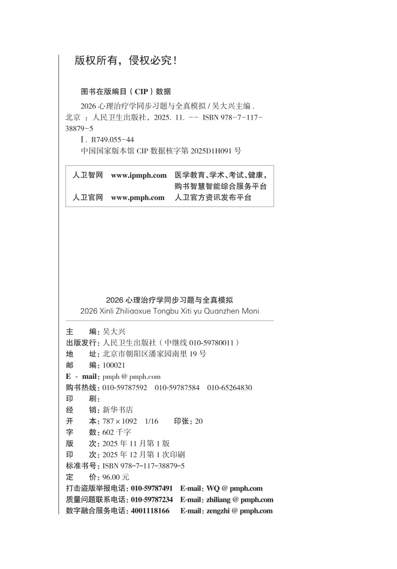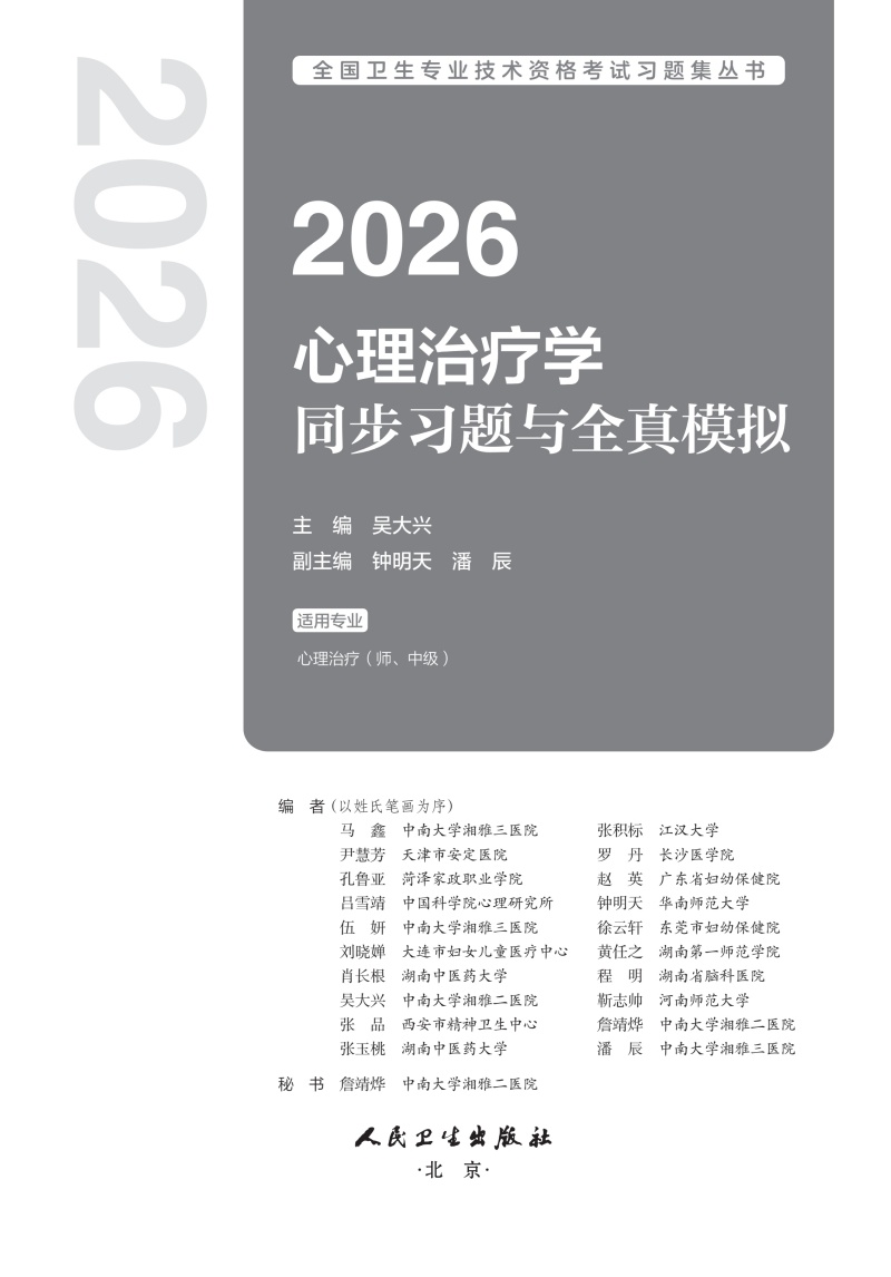 书名:2026心理治疗学同步习题与全真模拟