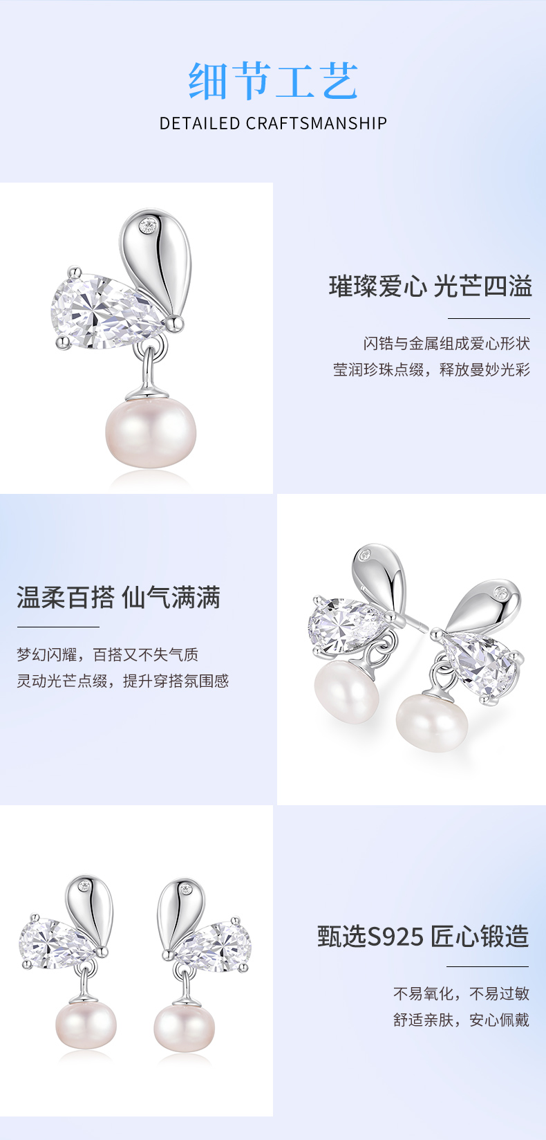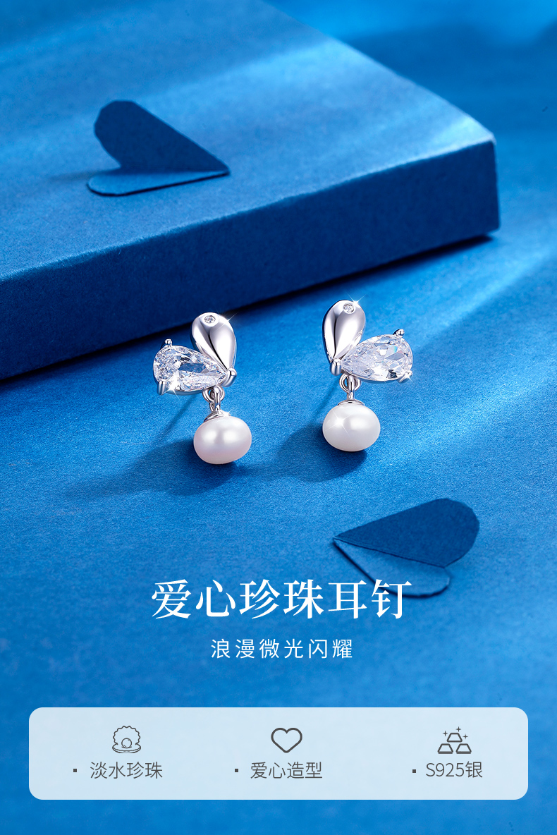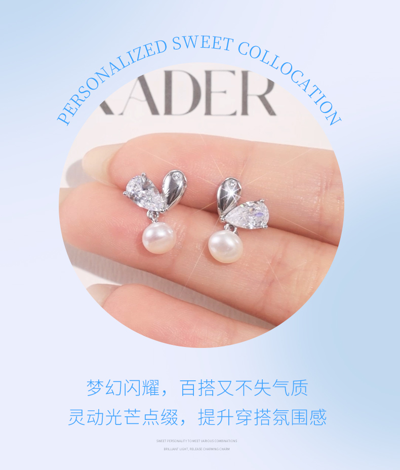 卡蒂罗/KADER 爱心珍珠耳钉 法式赫本风优雅复古纯银珍珠耳饰 小众轻奢设计不撞款 闪耀甜美日常通勤养耳洞#好运