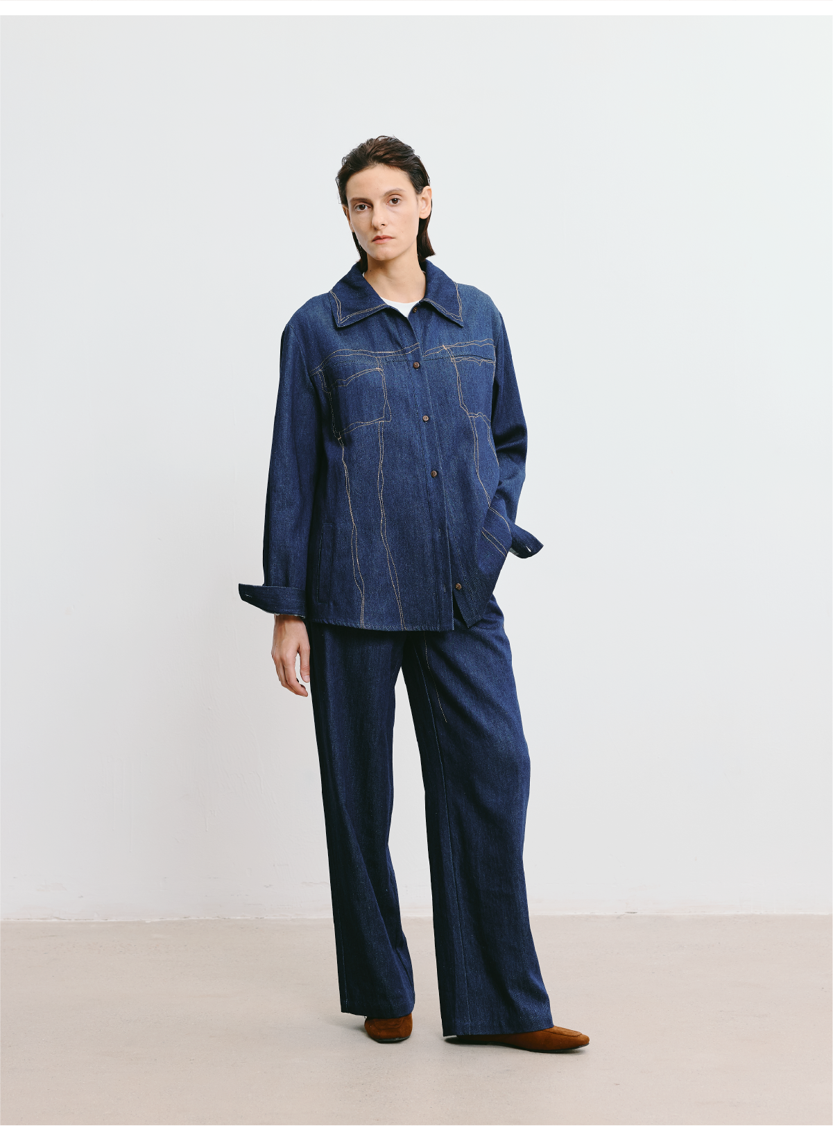 LIYIHAN 2025秋季新款通勤天丝牛仔阔腿裤女宽松休闲裤小众设计感