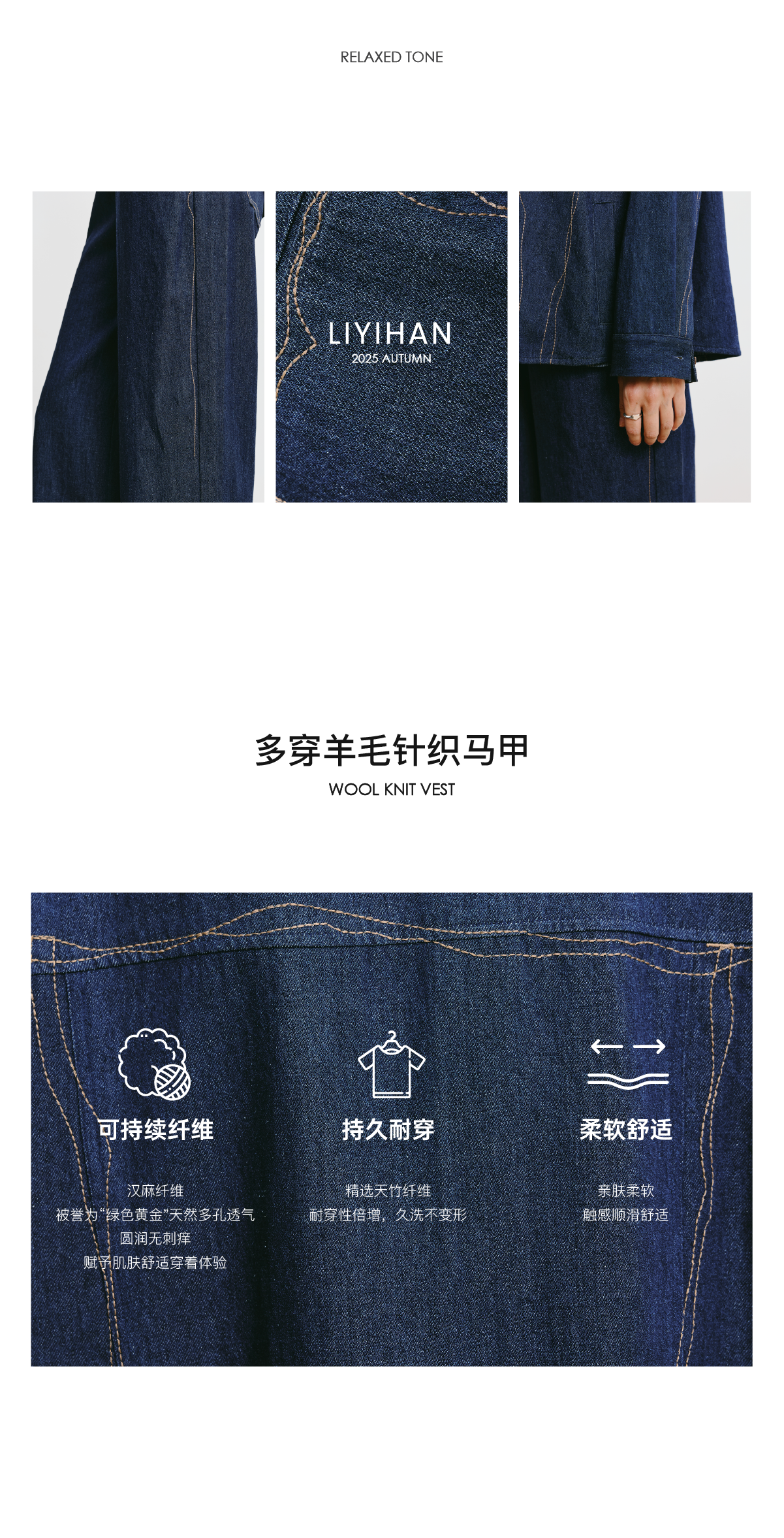 LIYIHAN李亦寒 2025秋新款时尚纯色羊毛开衫针织衫女修身开衫
