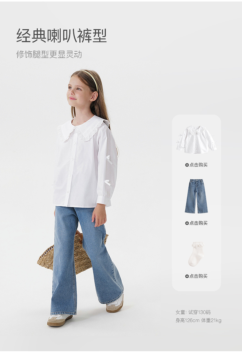 马克珍妮女童云感纯棉牛仔微喇裤2025年秋装新款551386