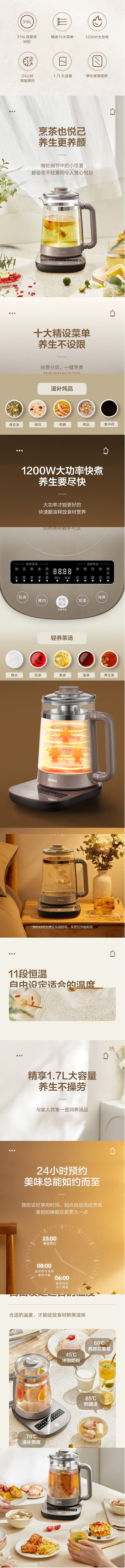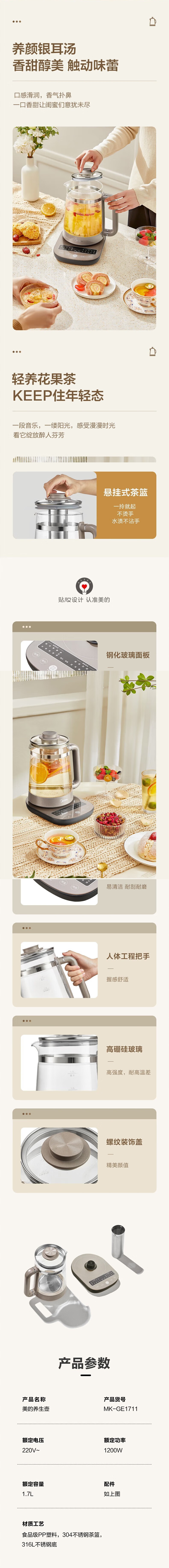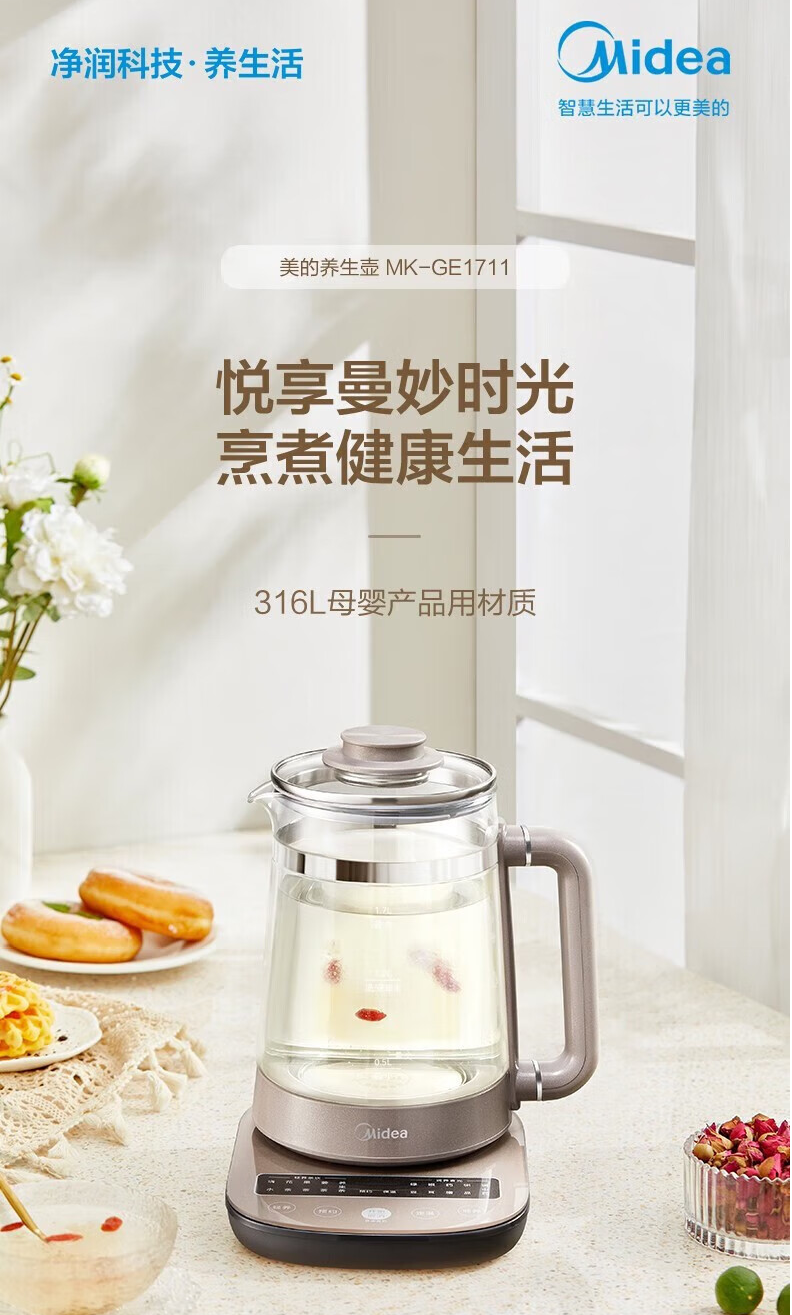 美的(510182)(Midea)养生壶 1.7升 煮茶器 316L母婴级材质电水壶 1200W大功率烧水壶 炖煮壶 MK-GE1711(ZMD安心系列)