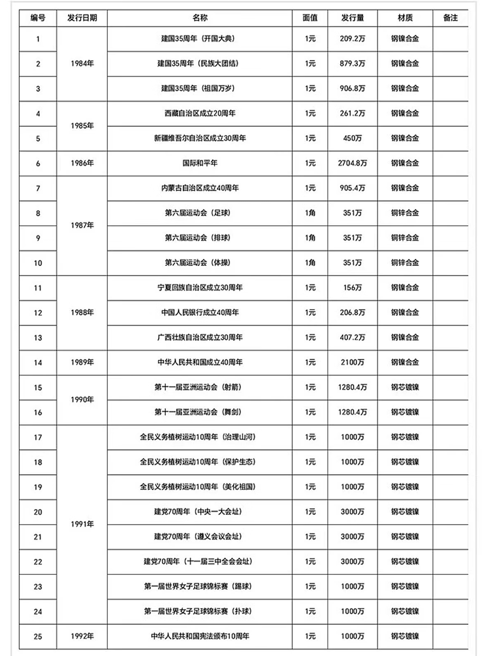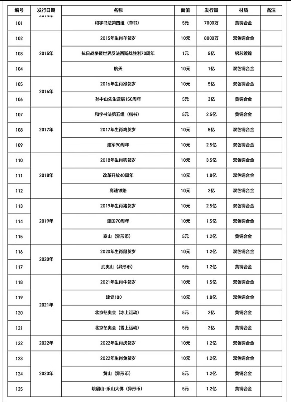 1984-2023年流通纪念币大全