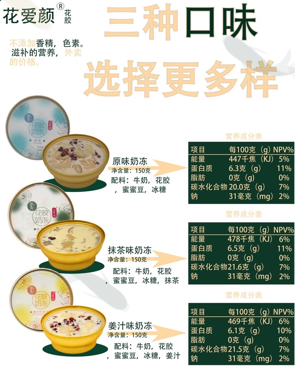花爱颜即食花胶奶冻3碗装 (原味/姜汁牛奶味/抹茶味)