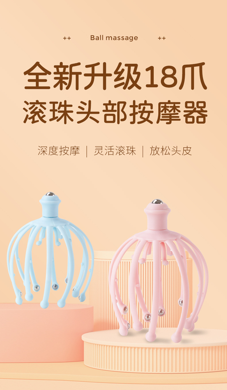 「升级礼盒装!抖音同款」八爪鱼头部按摩器抓头灵魂提取器居家日用18爪钢珠挠头皮按摩仪