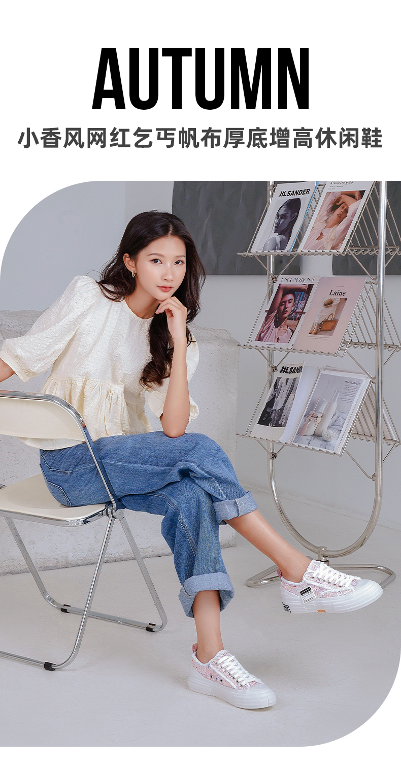Safiya/索菲娅2022年秋季新品小香风网红乞丐帆布鞋厚底增高休闲鞋女 SF23112422