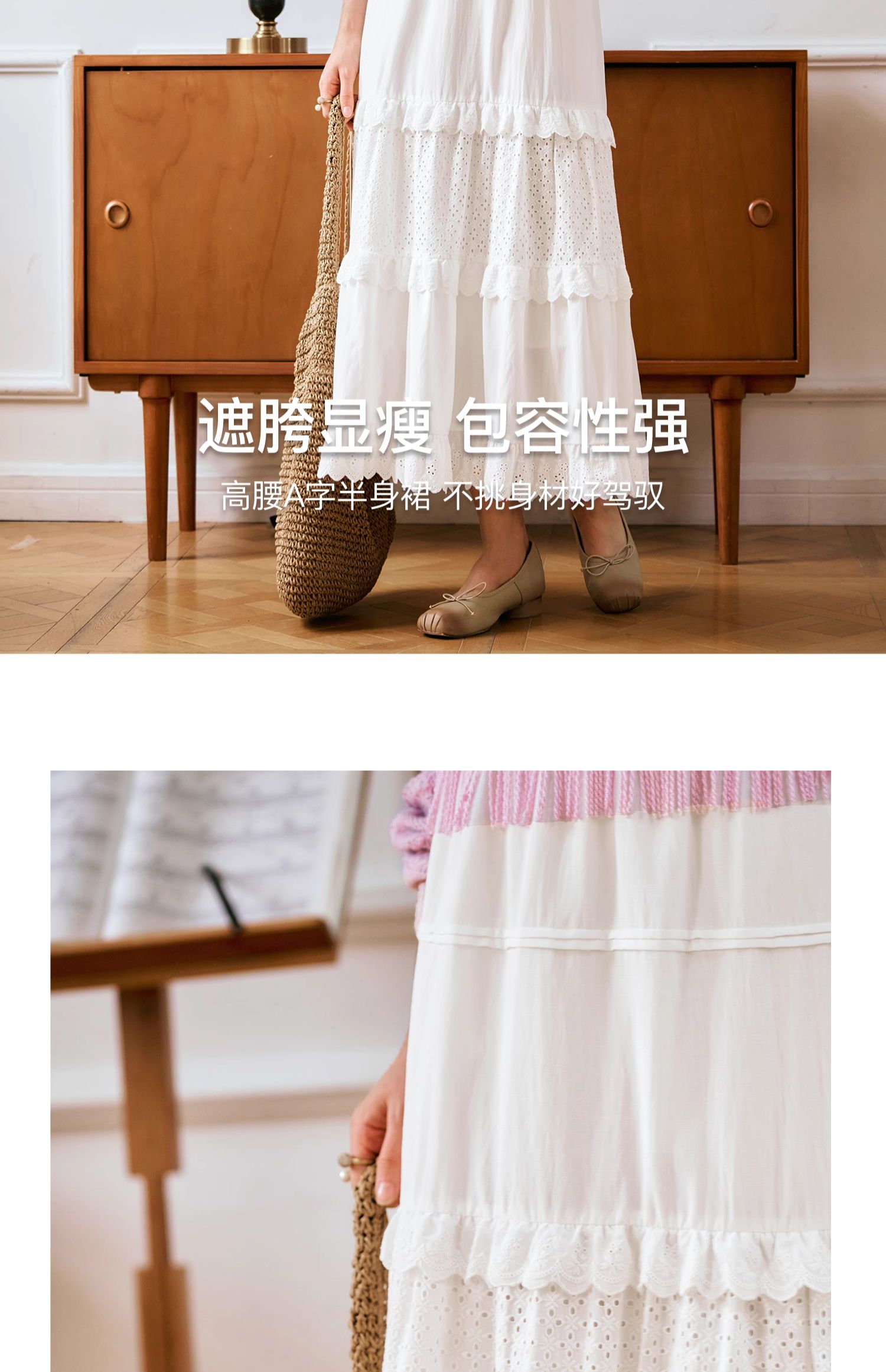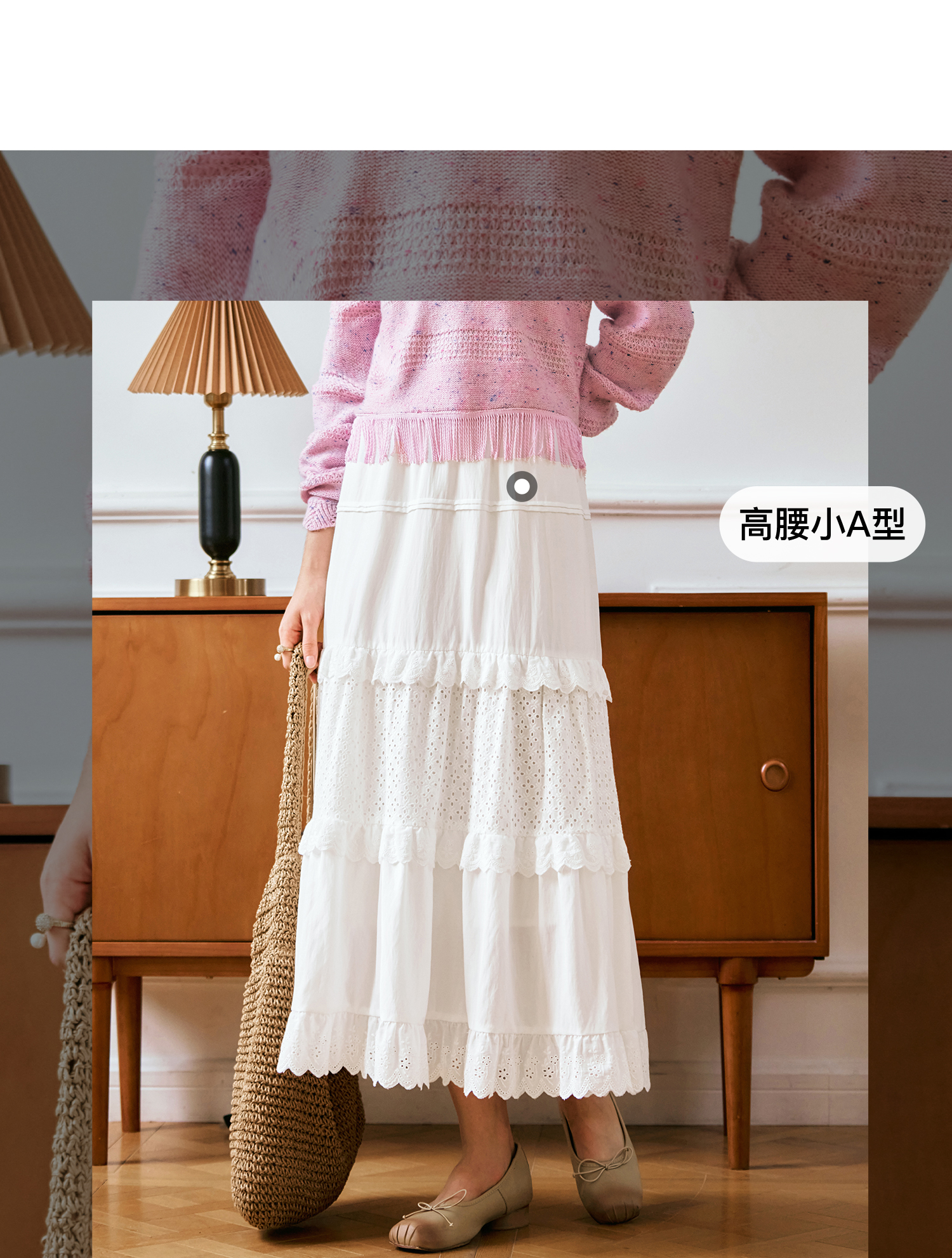 OLrain欧芮儿白色蛋糕裙半身裙女秋季2024年新款显瘦百搭中长裙