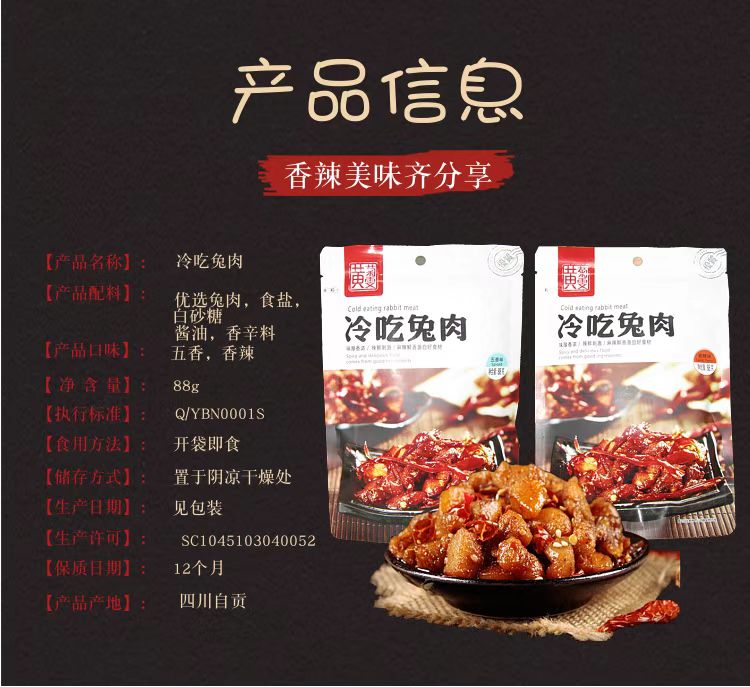 黄菊雯冷吃兔肉五香味88g