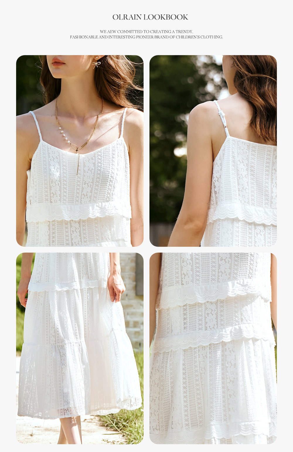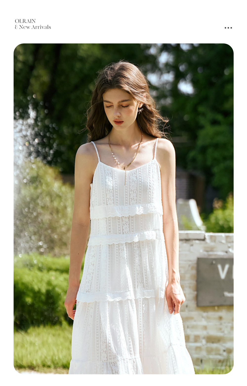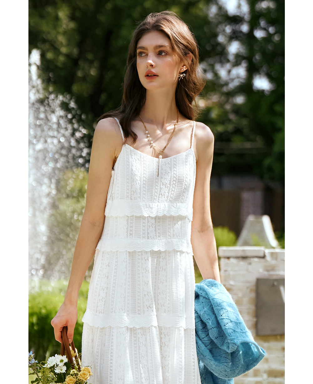 OLrain欧芮儿白色吊带连衣裙女春季2025年新款法式纯欲风蕾丝裙