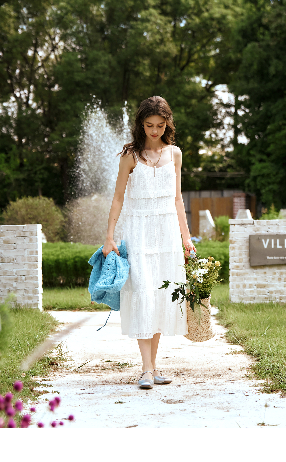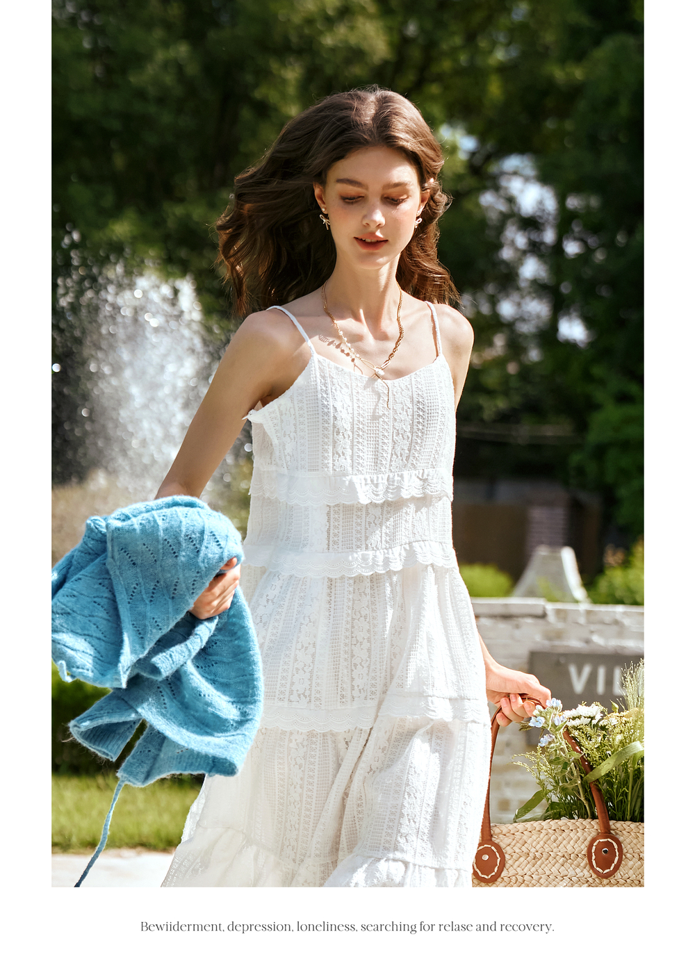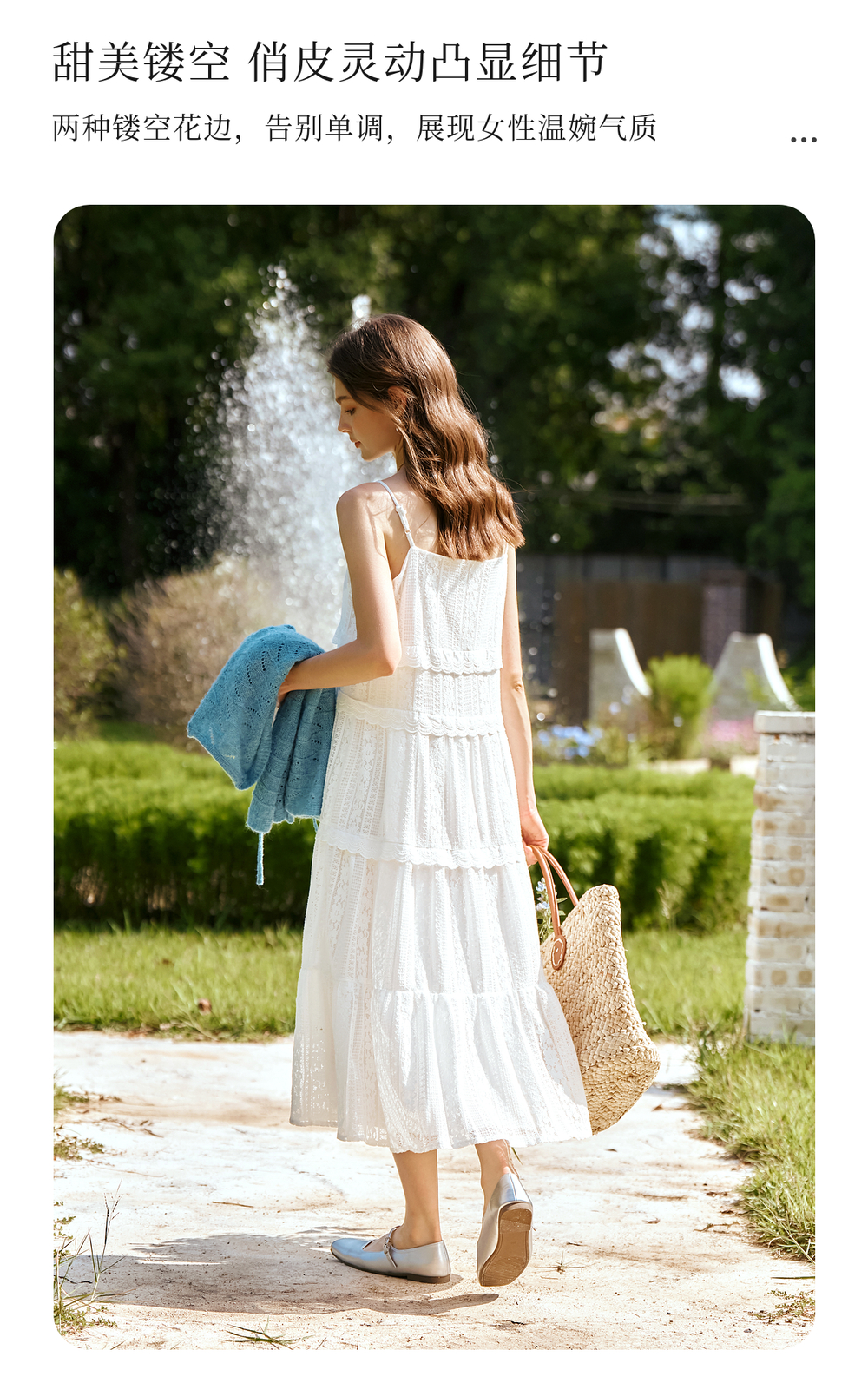 OLrain欧芮儿白色吊带连衣裙女春季2025年新款法式纯欲风蕾丝裙