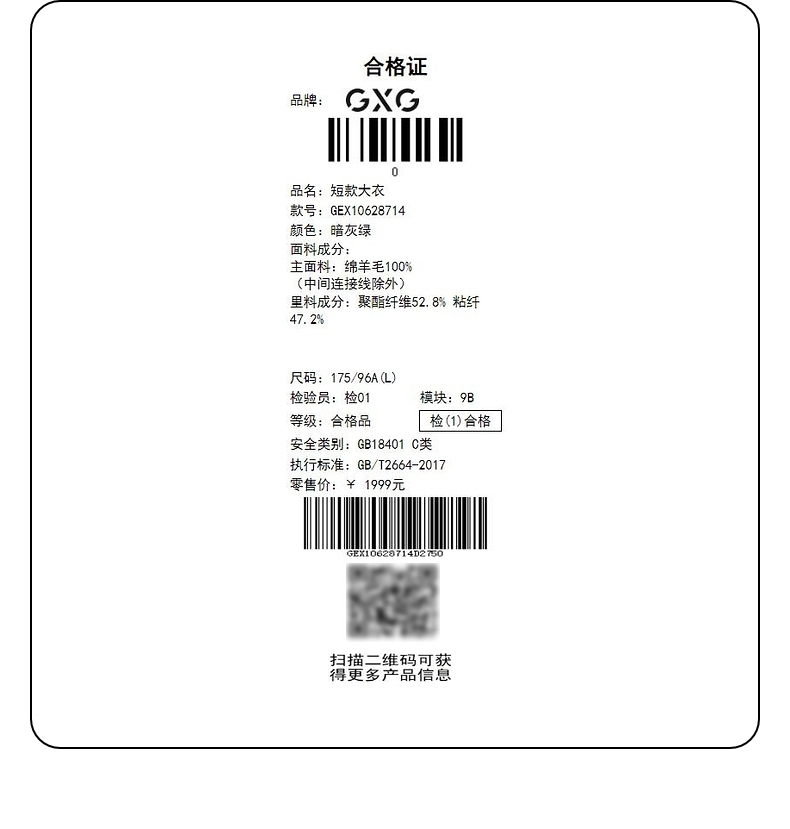 GXG男装 独特复古精致短款大衣 冬季热卖独特复古精致短款大衣GEX10628714