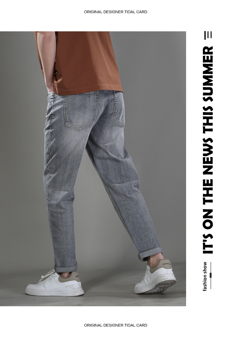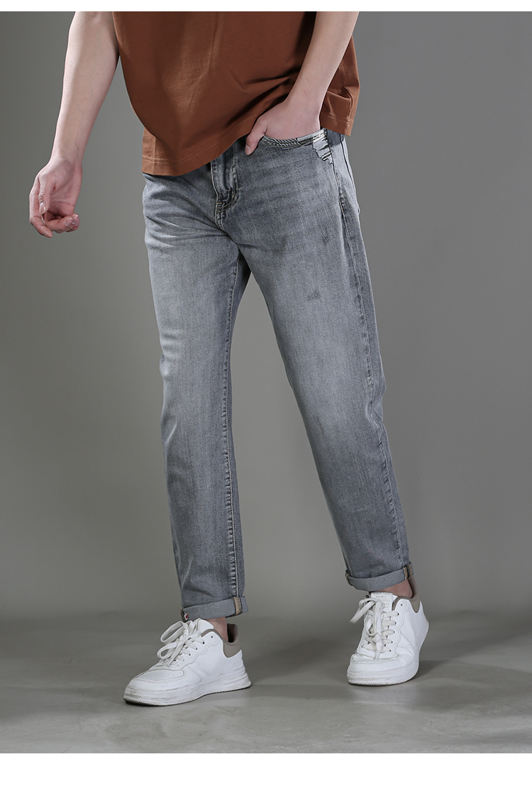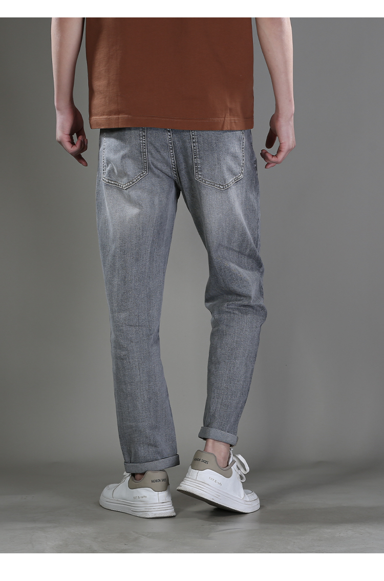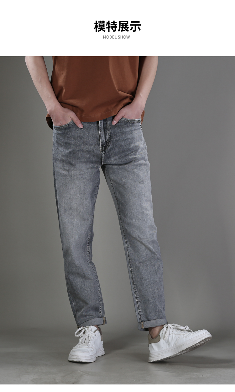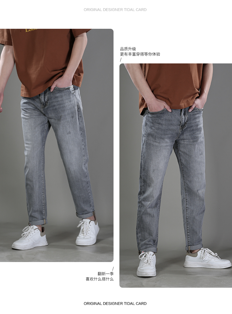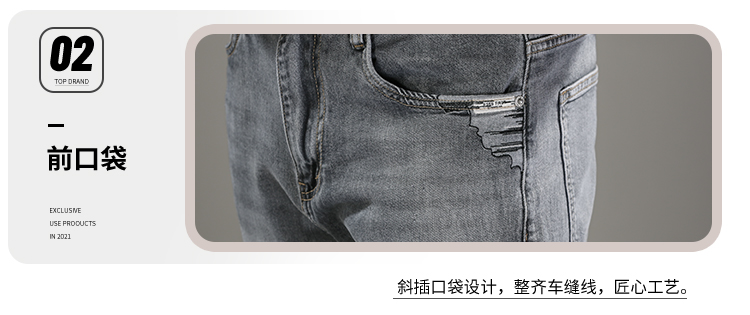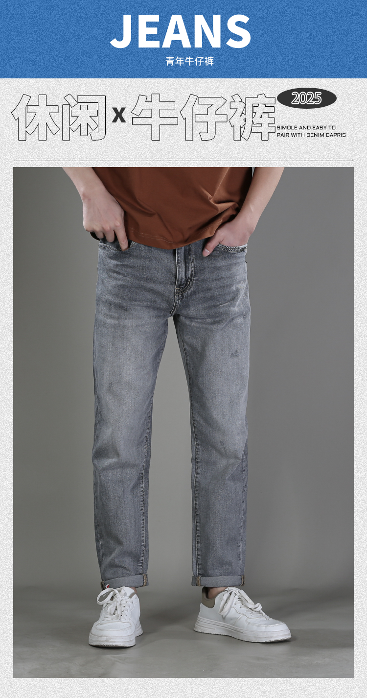 DRONKOO 2025 正常腰前左袋不规则贴布横绣线微吊磨中厚牛仔长裤