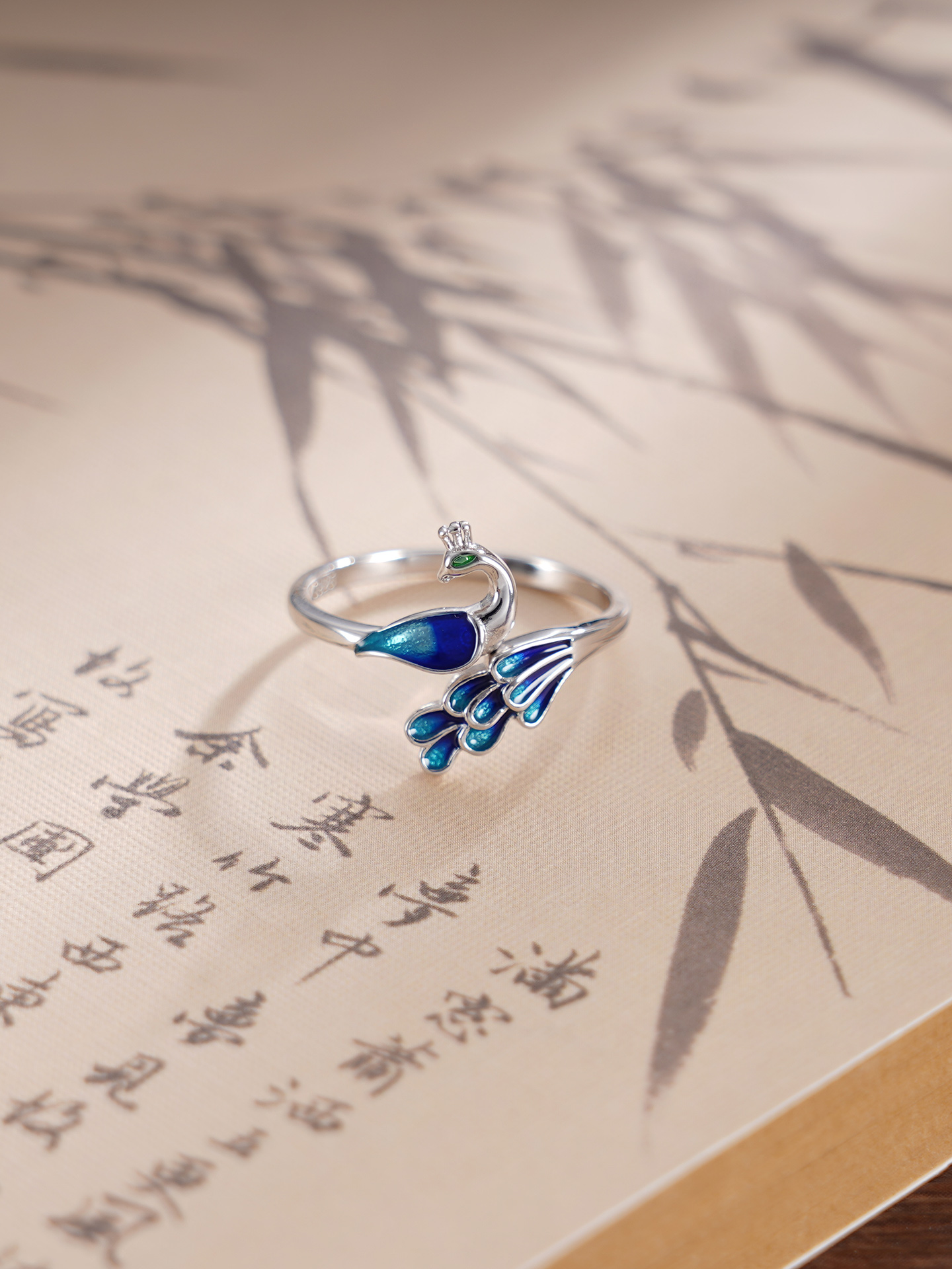 子佩集S925银【琳琅雀舞】戒指【YH08400037-3】纯银花丝珐琅彩2410