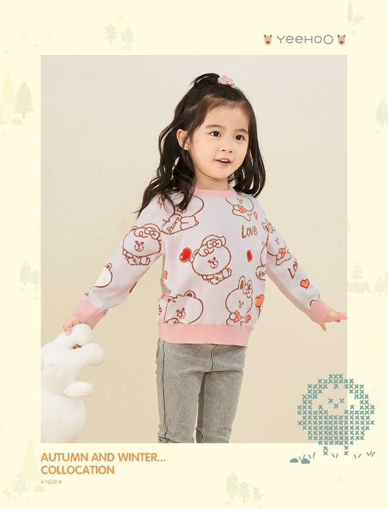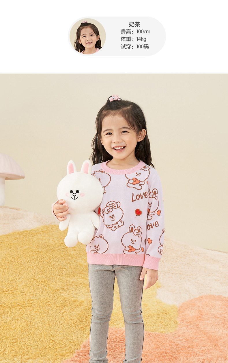 英氏-童衣类(秋)E1连毛圆领淡天堂粉100CM