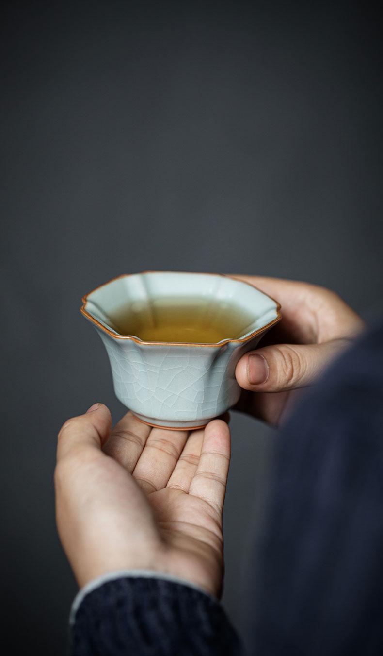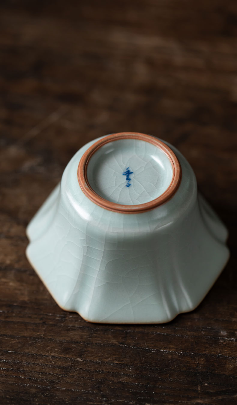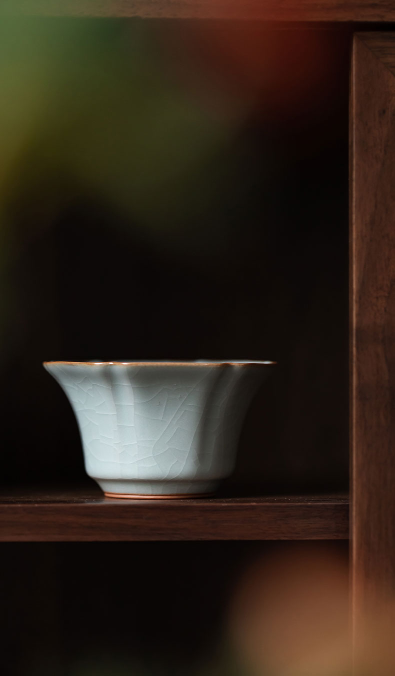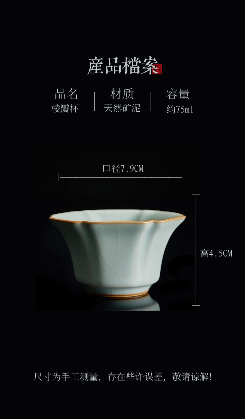 【丰子汝窑】【天青棱瓣杯】8.3x4.8cm 80ml 茶杯纯手工开片主人杯陶瓷汝瓷单杯子个人品茗杯功夫茶具