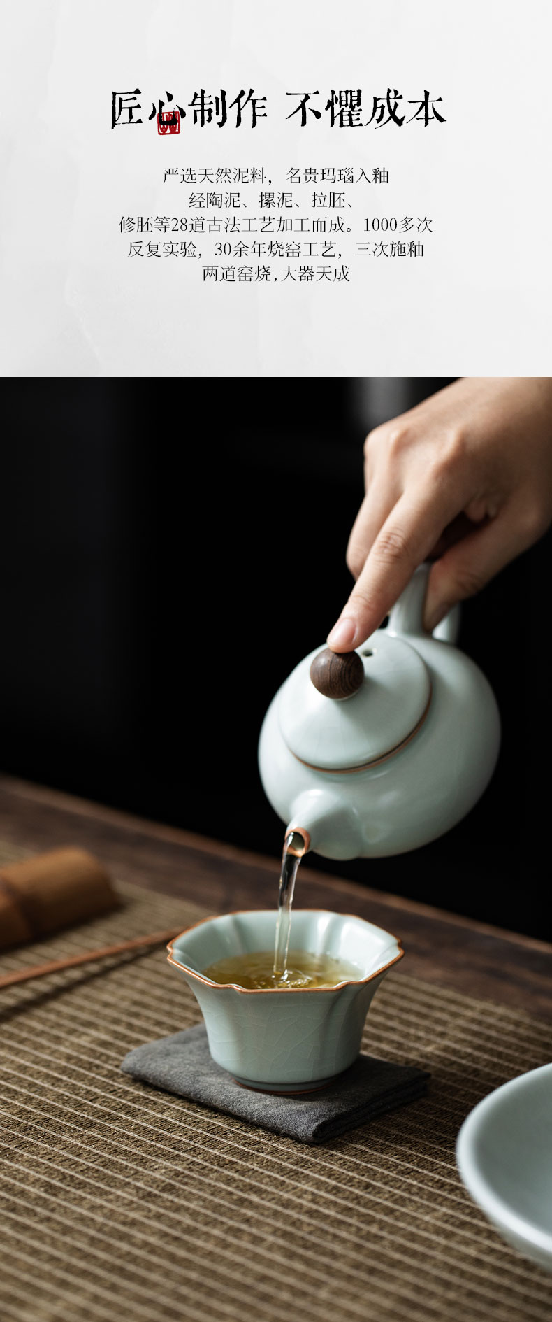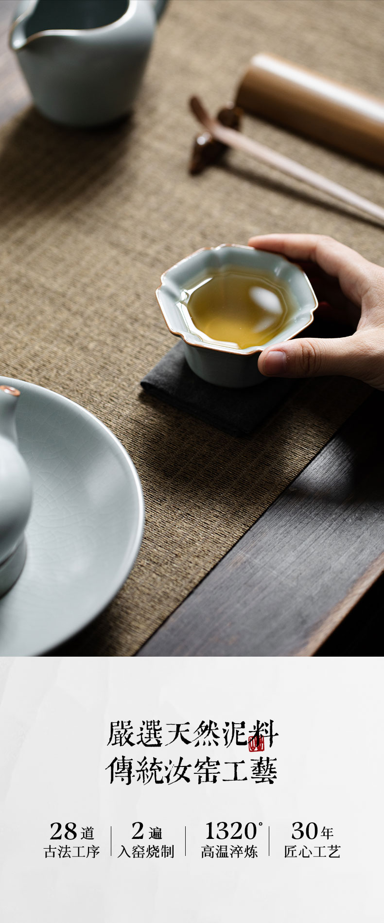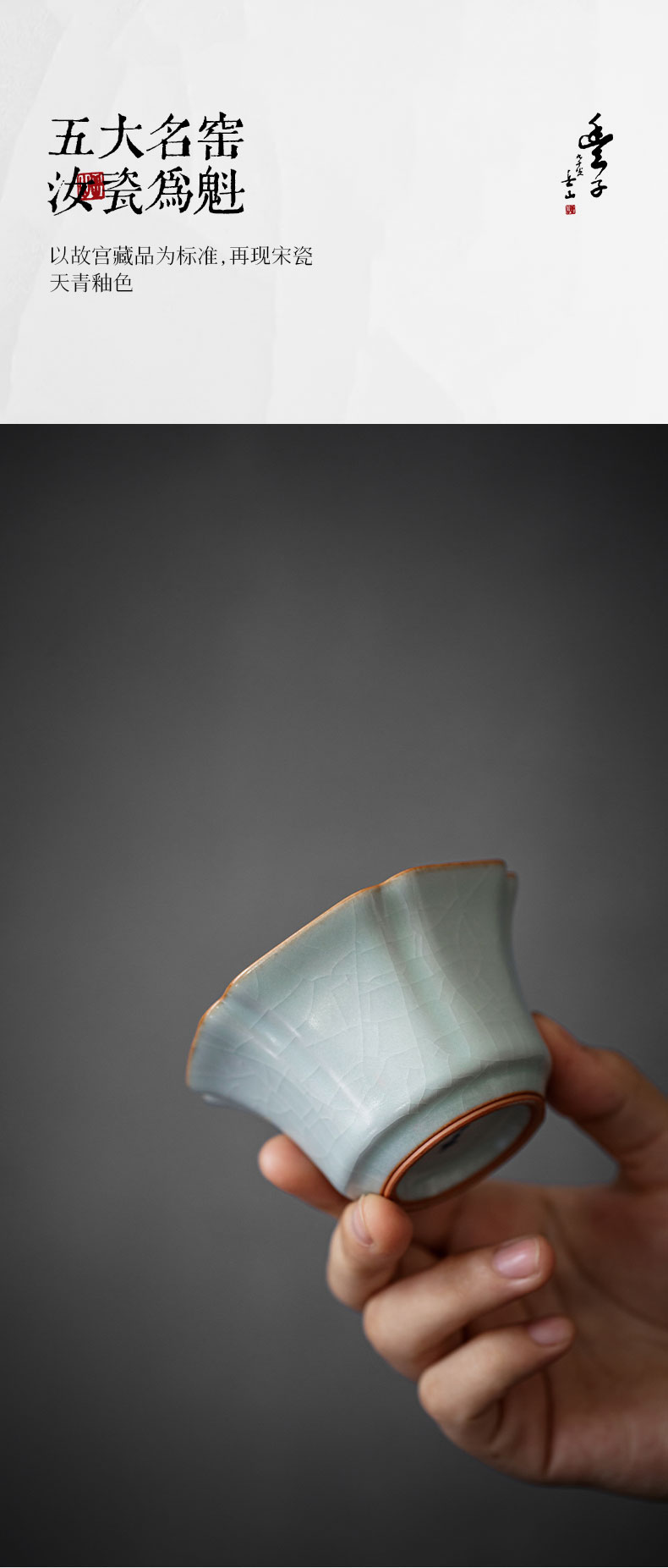 【丰子汝窑】【天青棱瓣杯】8.3x4.8cm 80ml 茶杯纯手工开片主人杯陶瓷汝瓷单杯子个人品茗杯功夫茶具