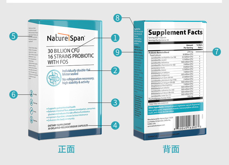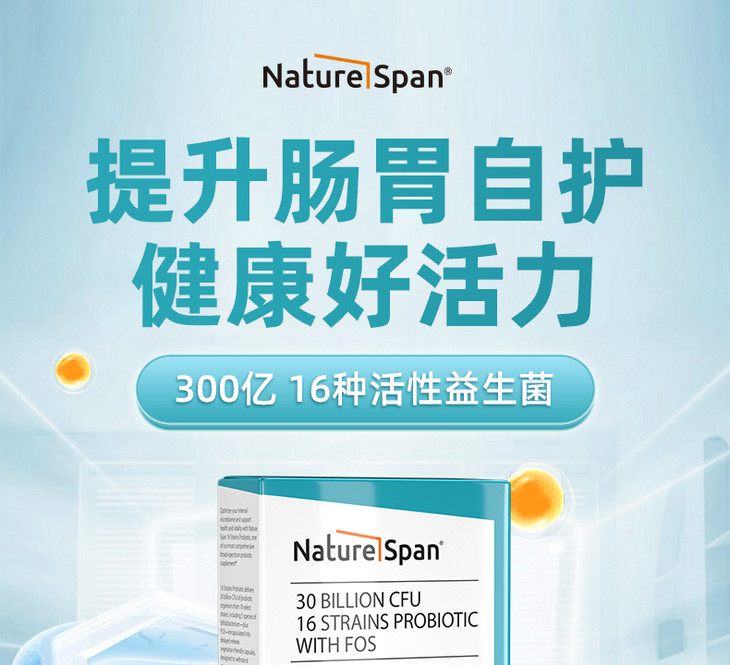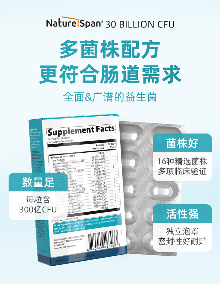 16种益生菌300亿 经典版小肚腩救星罗伊氏乳杆菌成人全家30粒美国NatureSpan倍能适