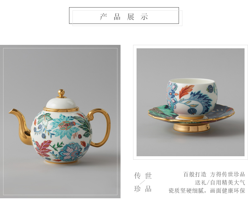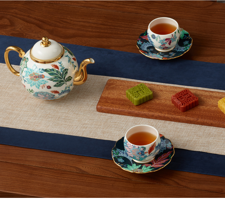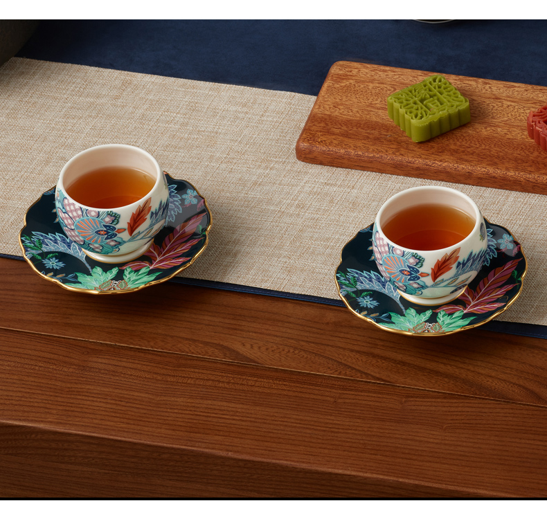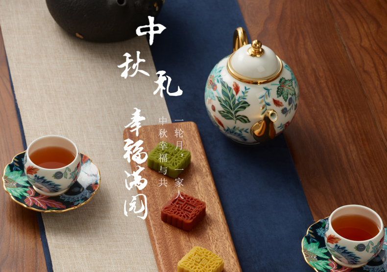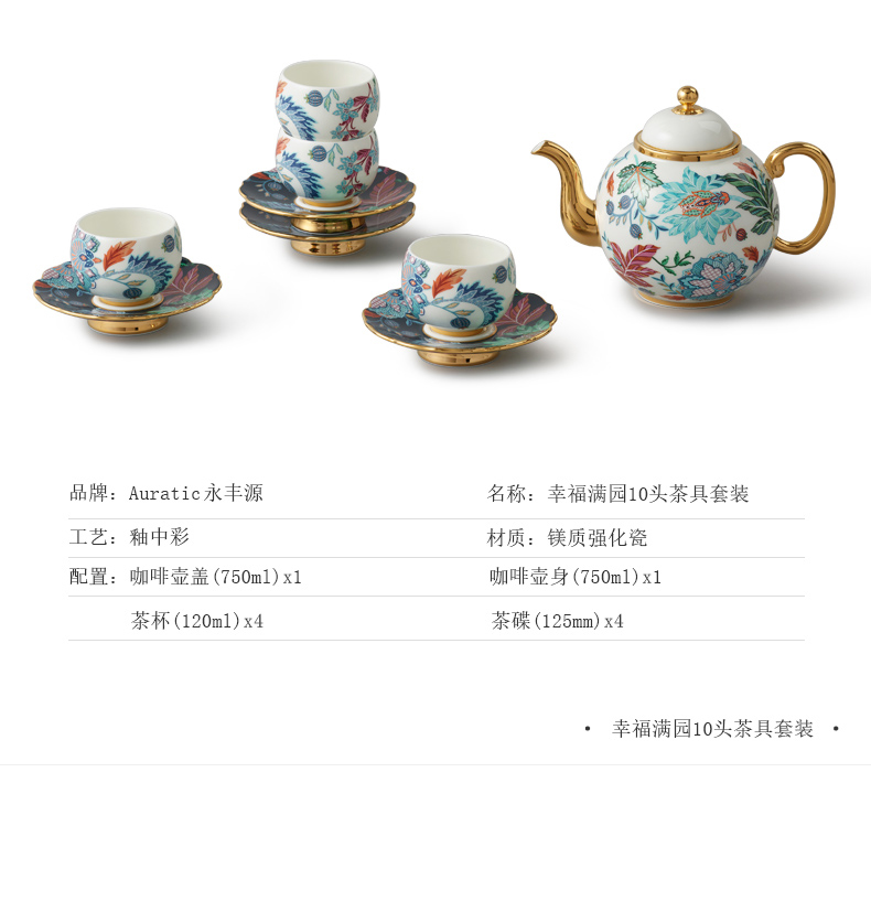 【国瓷·永丰源】幸福满园10头陶瓷茶具套装 中式茶杯茶壶【不含木架】