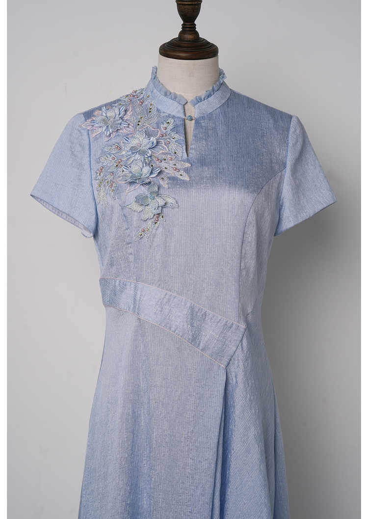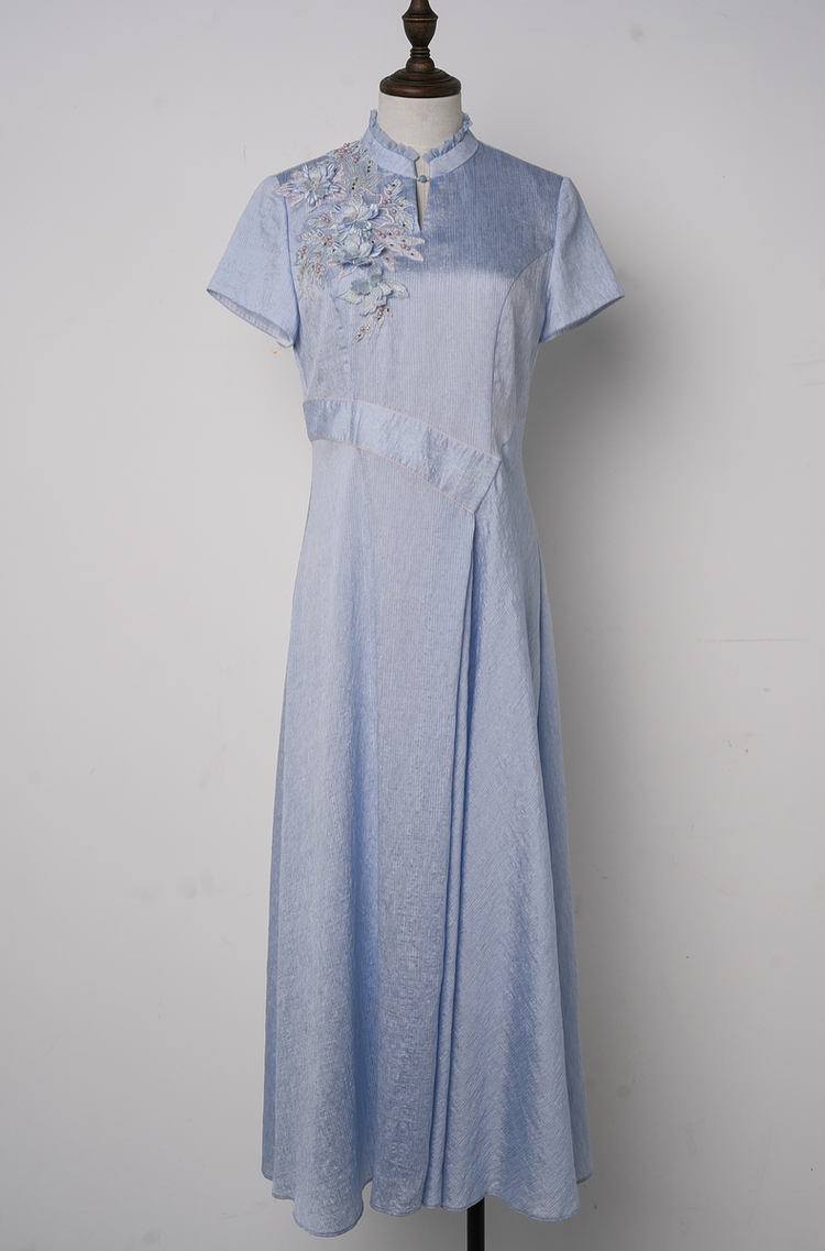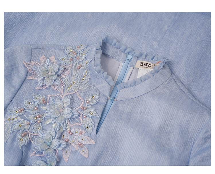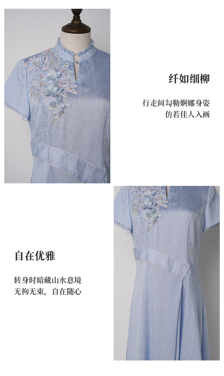 吉祥衣家新中式国风夏新款裙子气质显瘦修身女装临江仙真丝连衣裙