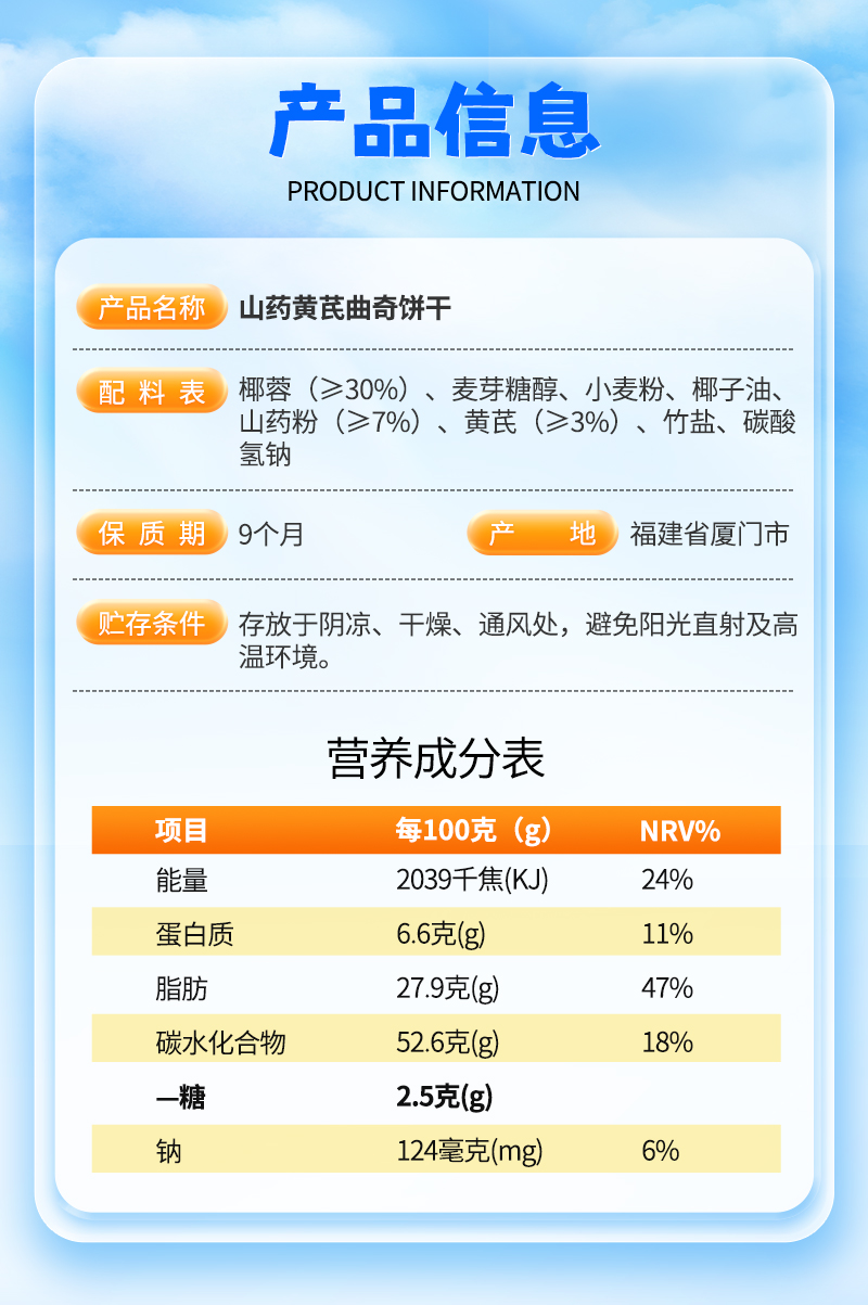 【酥脆椰蓉】悦意山药黄芪曲奇饼干180g独立15包茶点心无蛋奶纯素