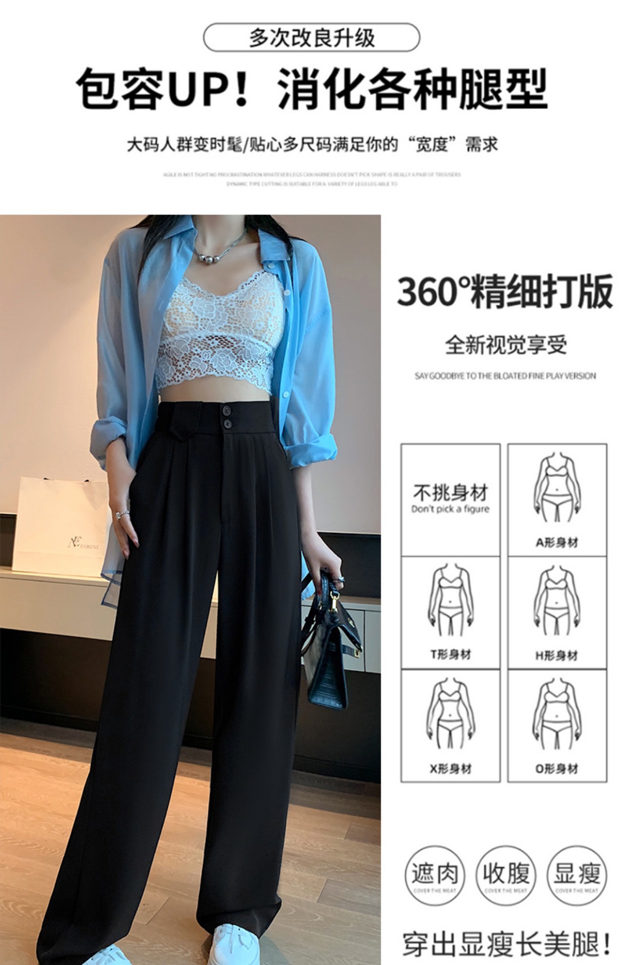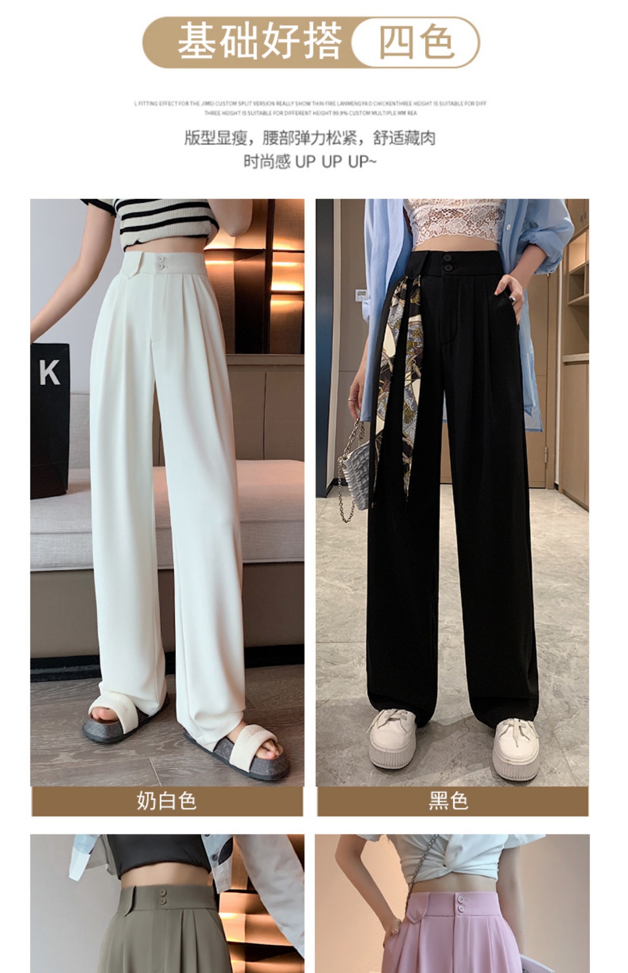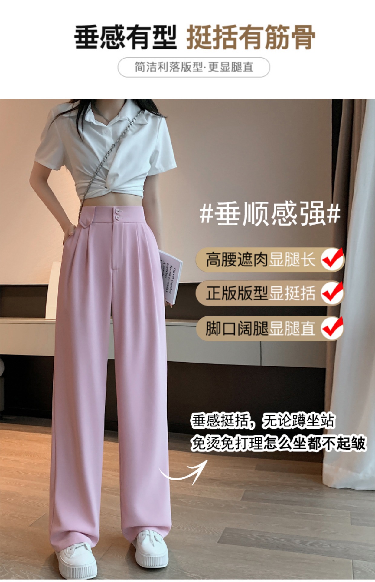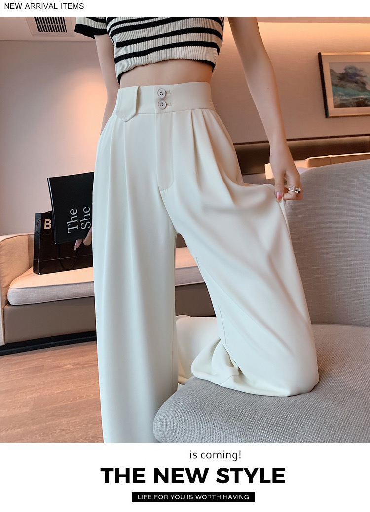 送彩色丝巾【千吉娜Chigina高品质窄版雪纺西装阔腿西裤】夏季2023女款高腰显瘦百搭休闲拖地垂感梨形身材西装裤