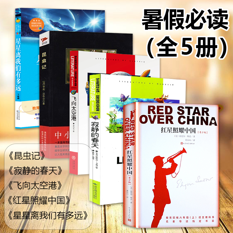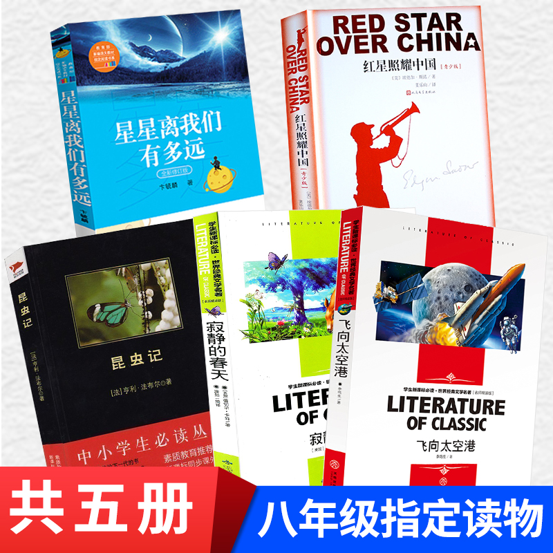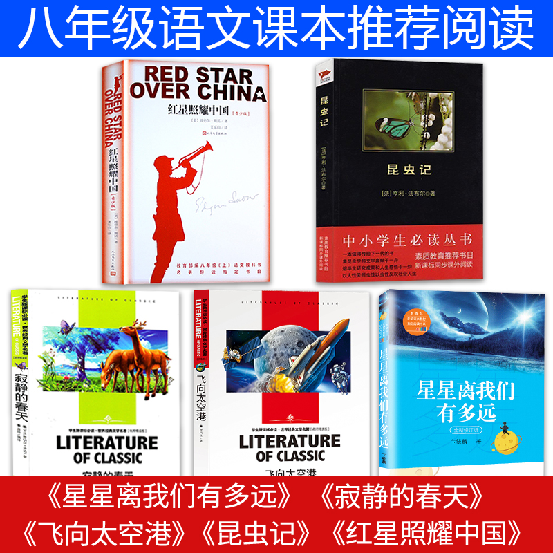【优惠套装】中小学生阅读书单八年级上全5册指定阅读红星照耀中国昆虫记飞向太空港无长征正版初中生版必读名著初二上册语文书籍寂静的春天