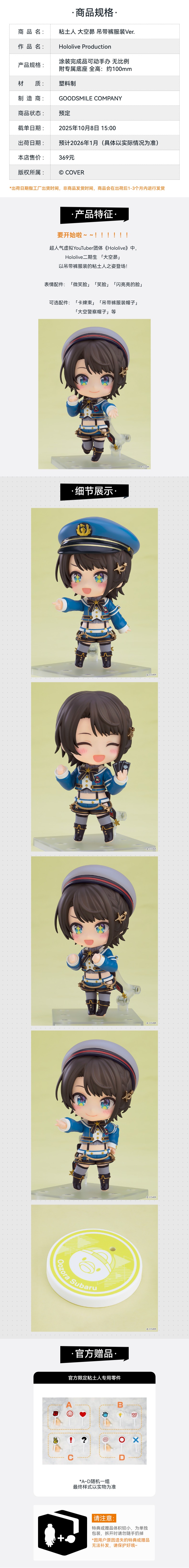 【GSC预售定金】粘土人 大空昴 吊带裤服装Ver. 手办模玩 Hololive Production