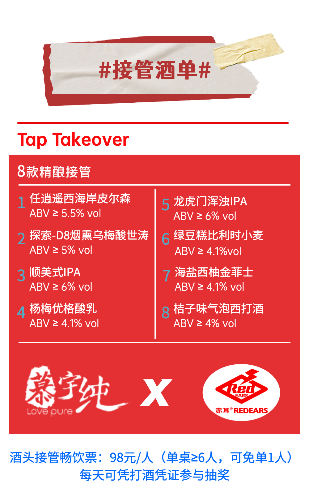 赤耳×慕宇纯酒头接管8月19日畅饮票(单人)