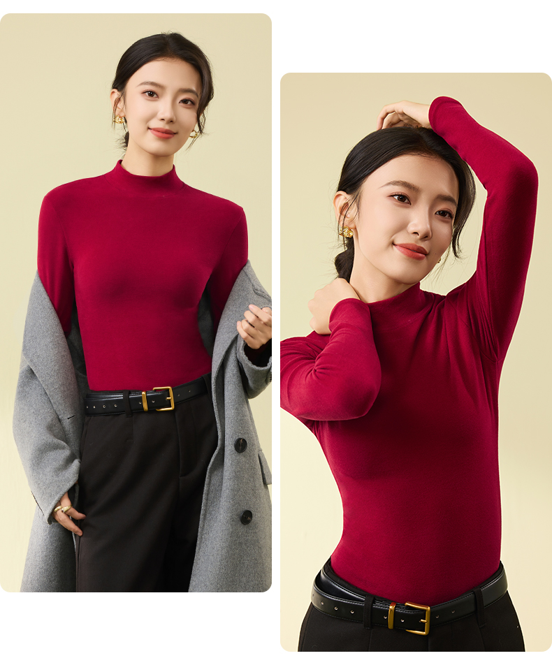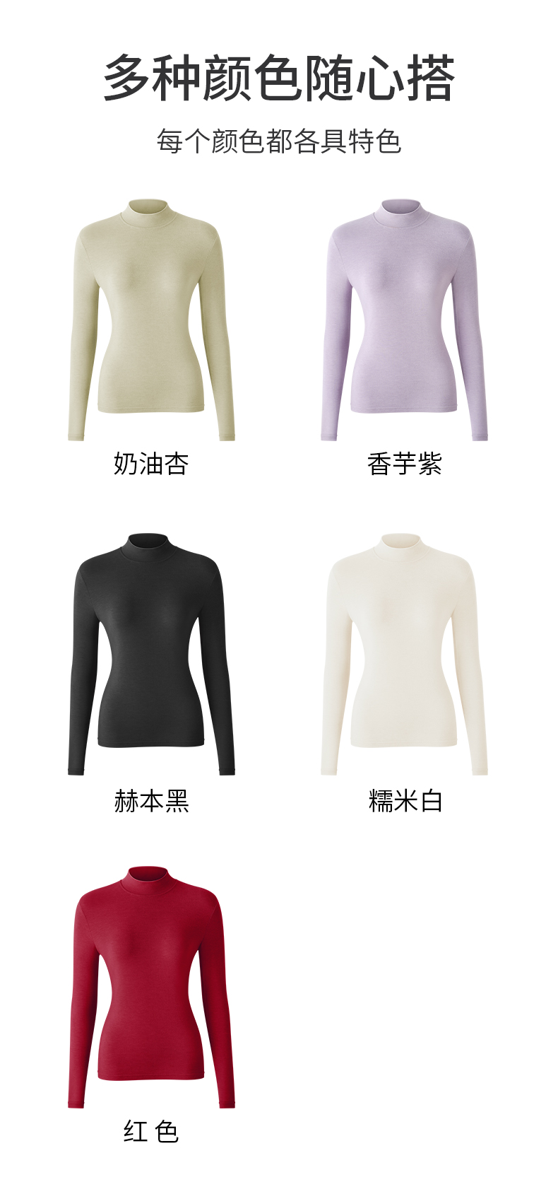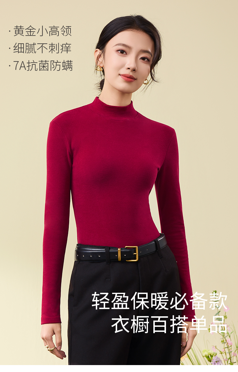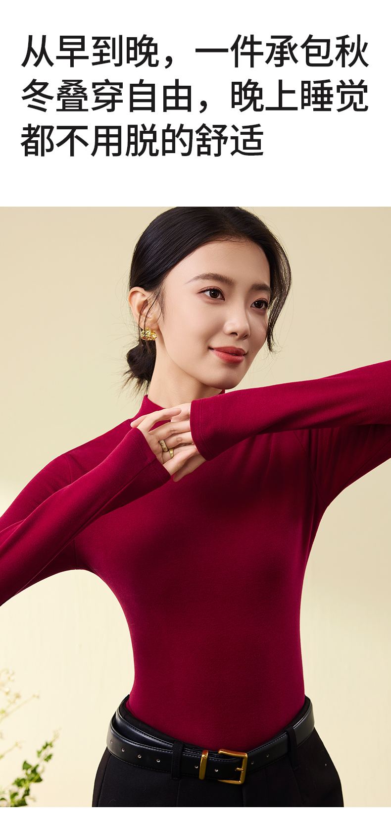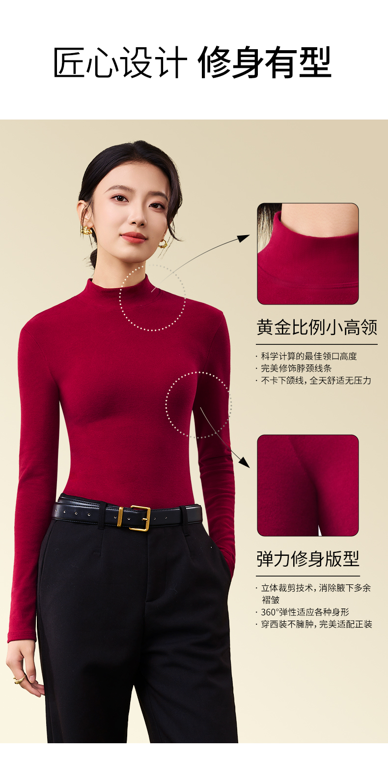 爱帝女士膨体锁温双面磨绒小立领长袖打底衫