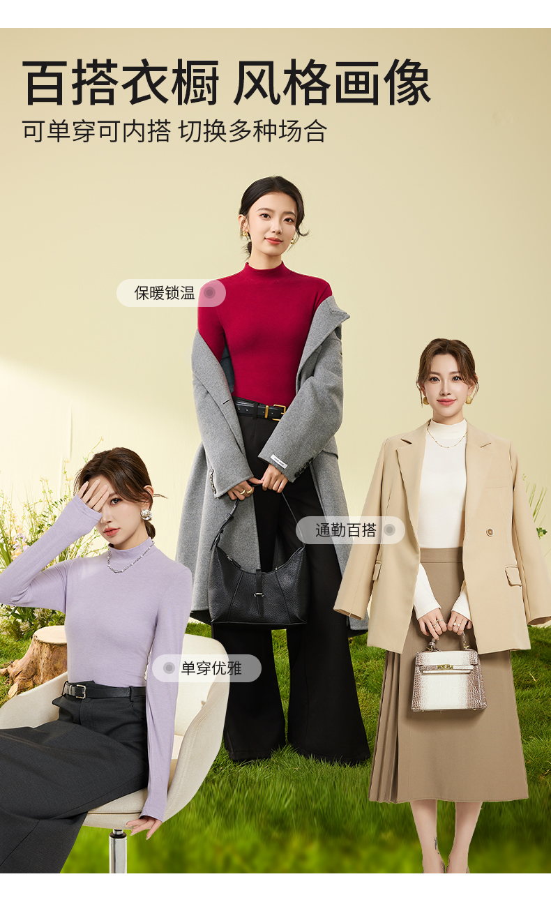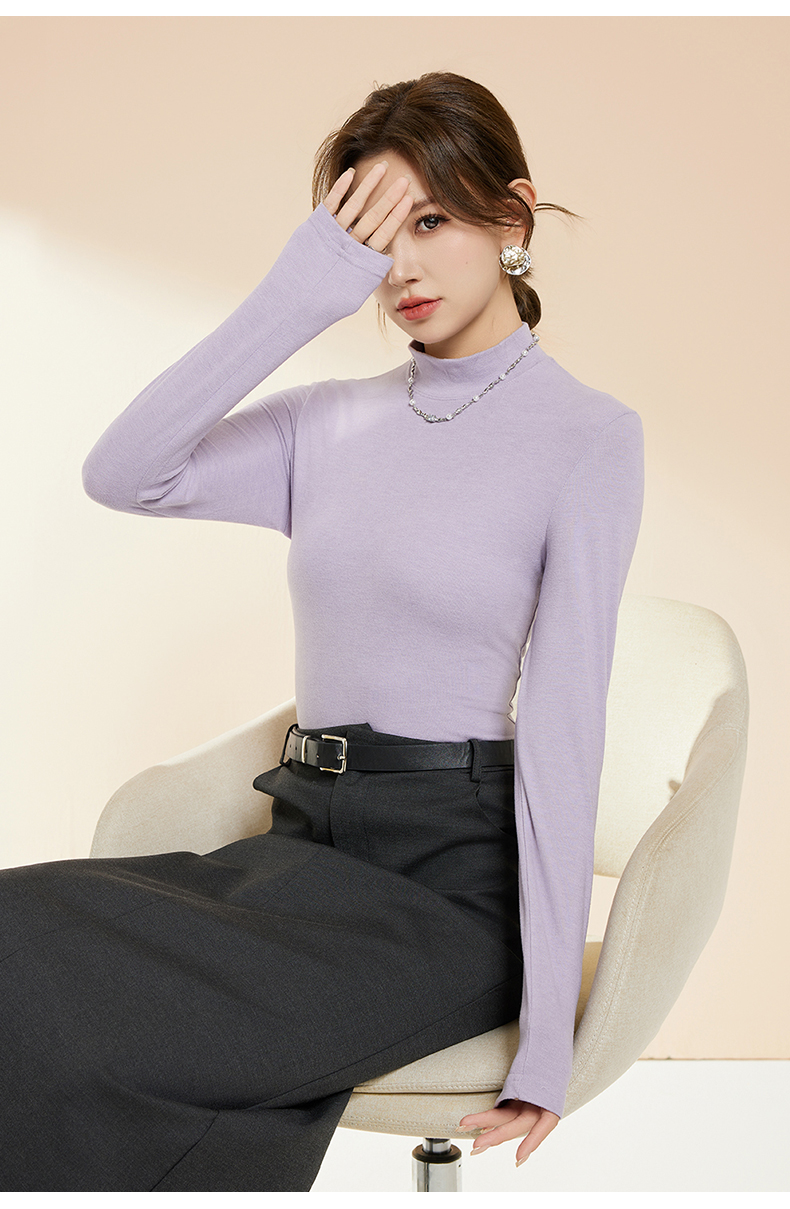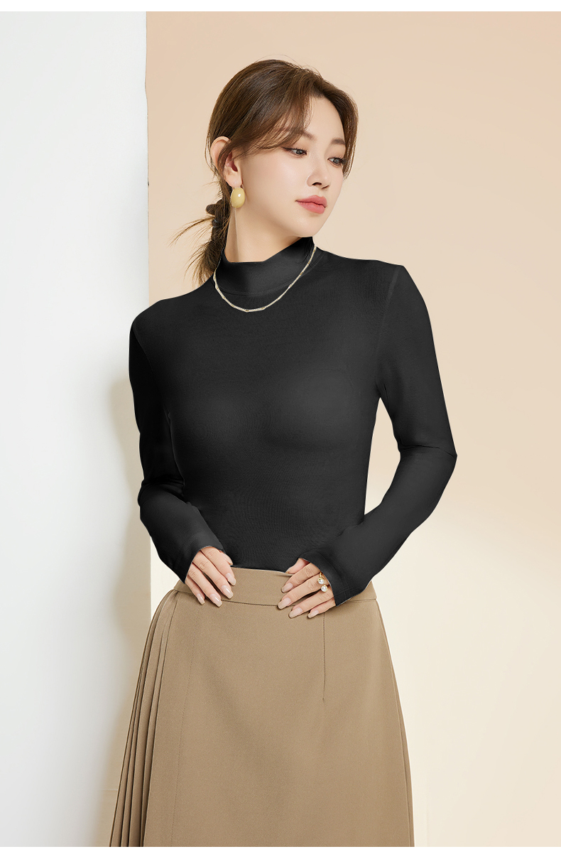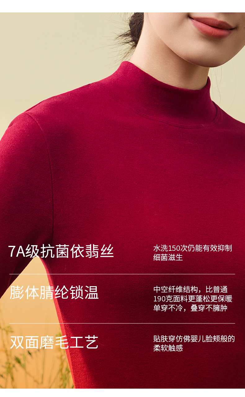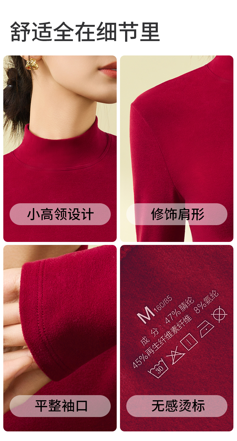 爱帝女士膨体锁温双面磨绒小立领长袖打底衫