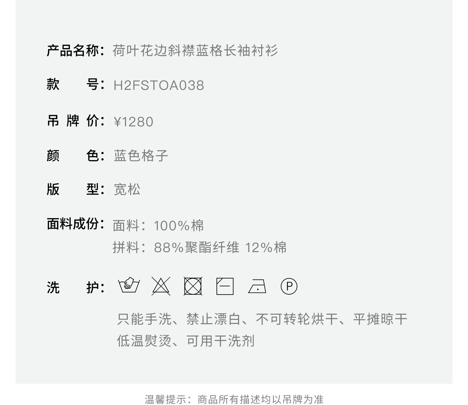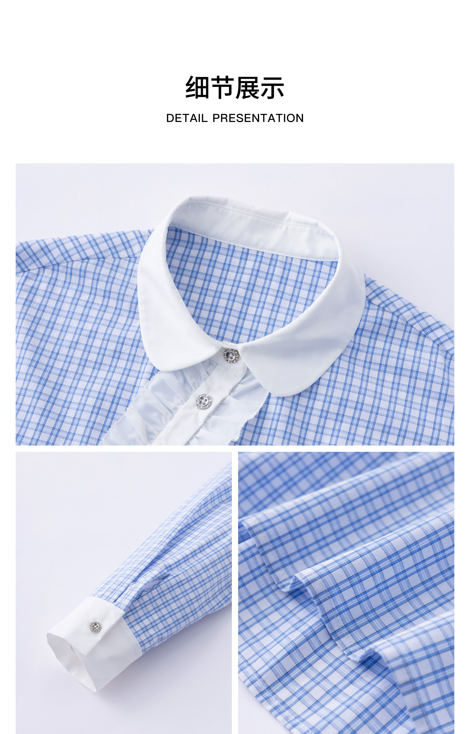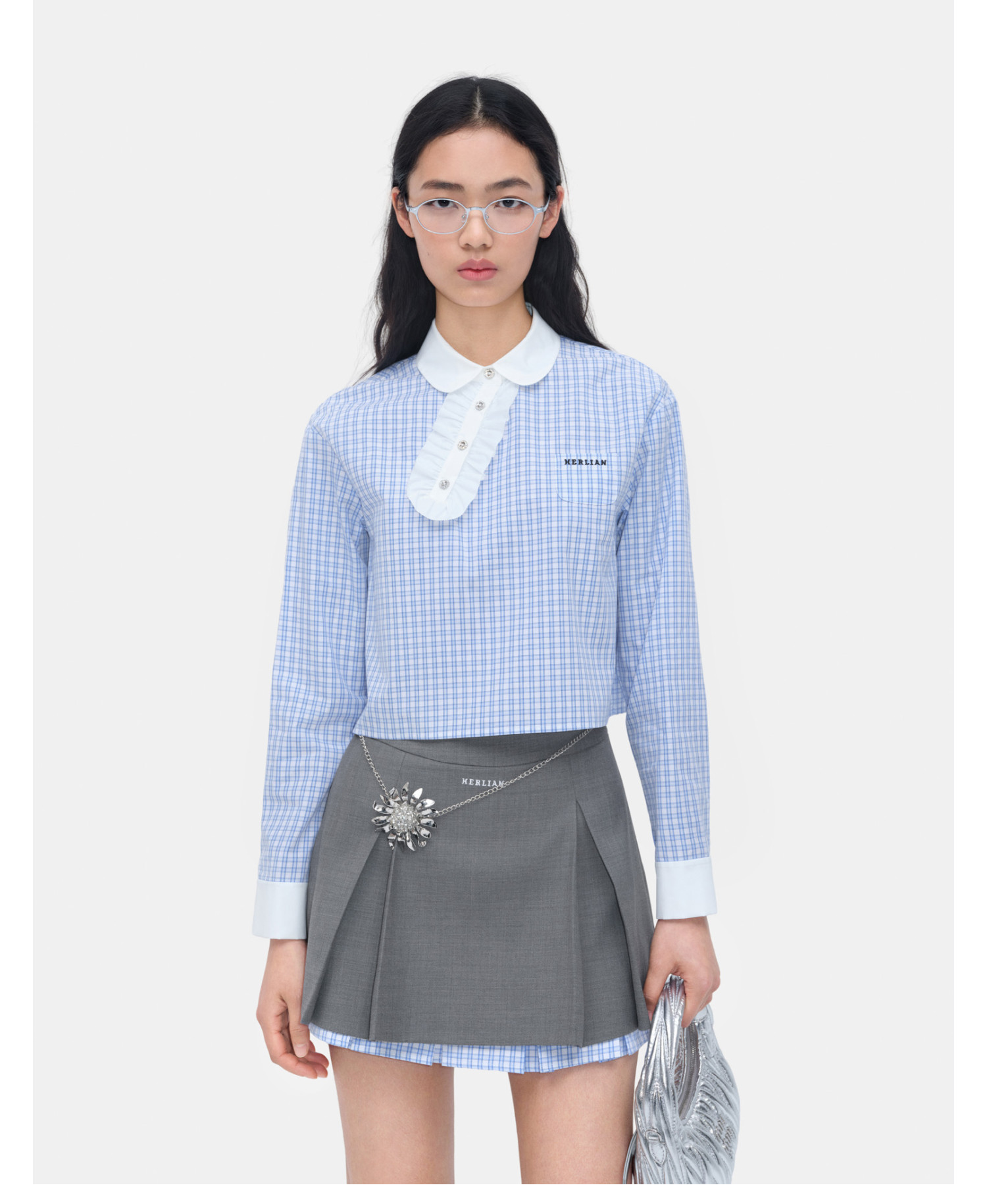 HERLIAN 2026年春季新品荷叶花边斜襟蓝格女士长袖宽松显瘦衬衫