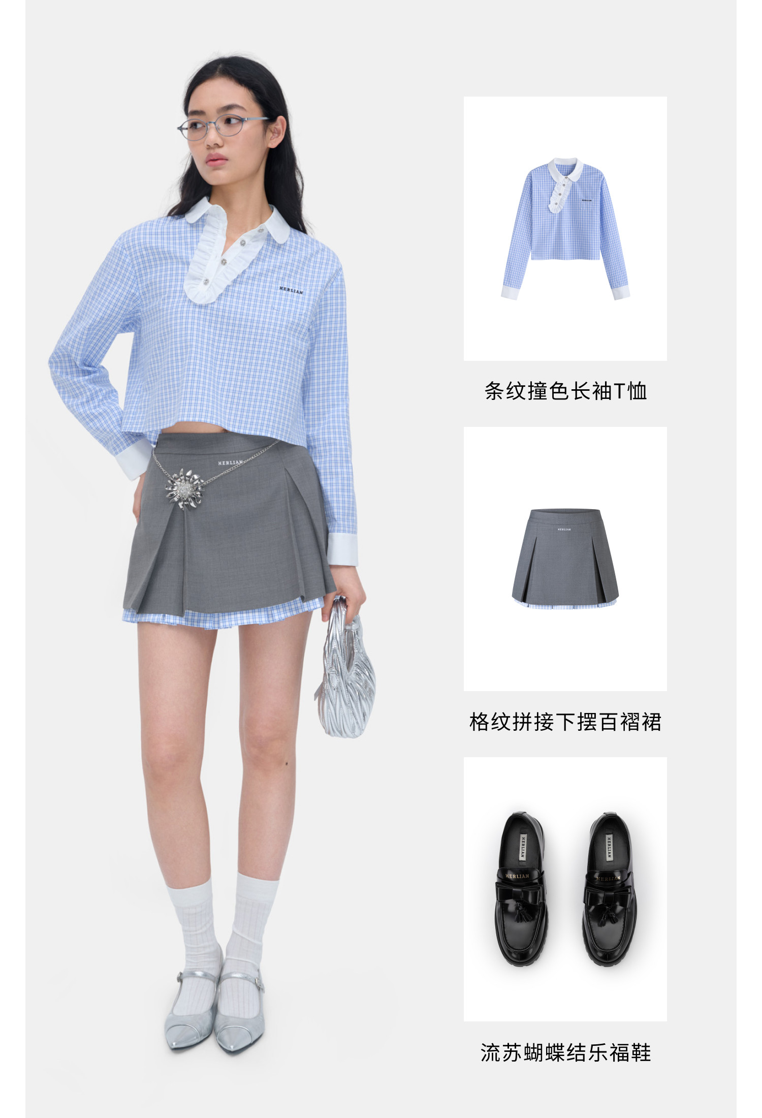 HERLIAN 2026年春季新品百可拆卸蝴蝶结百褶裙女士A字短裙