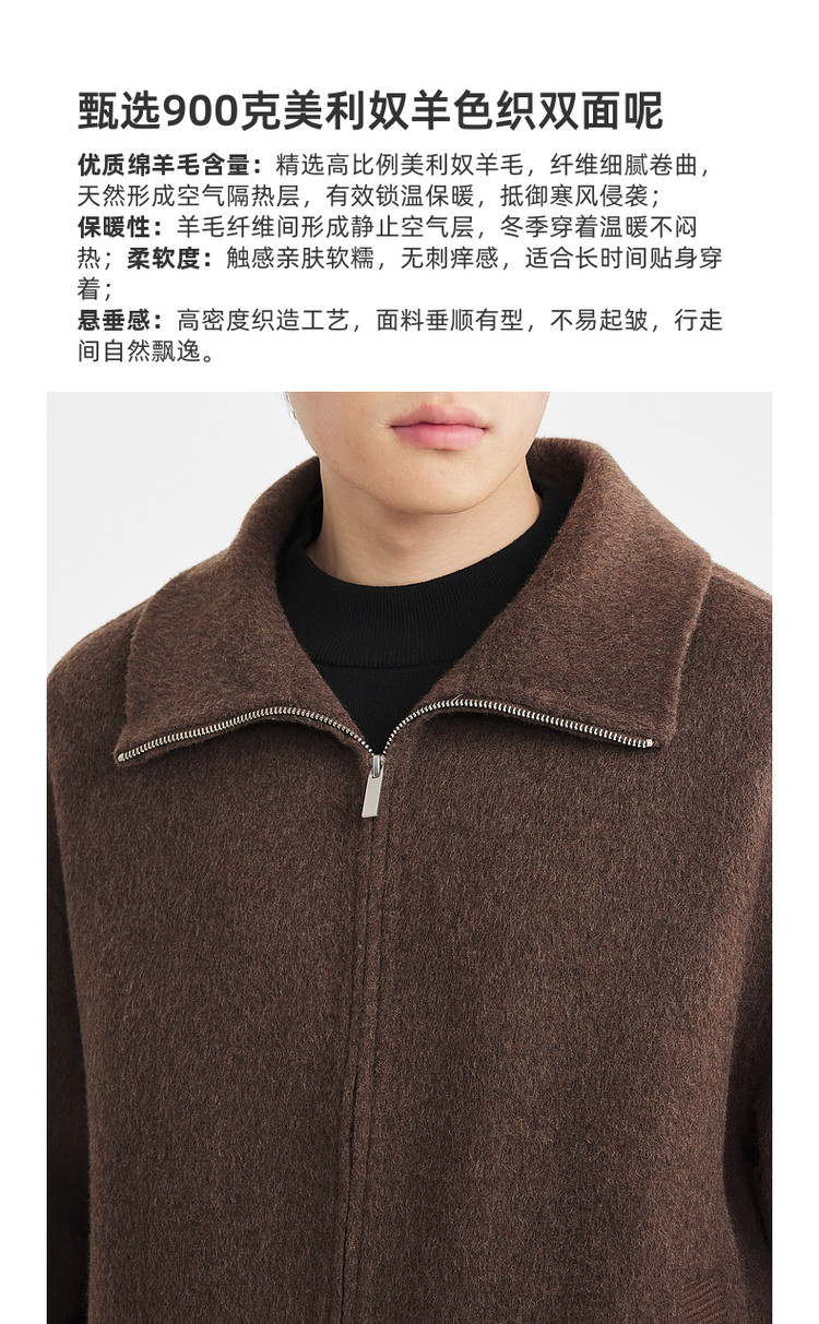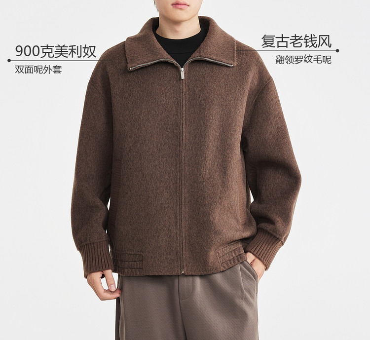 墨麦客男装2025年冬季新款落肩双面呢夹克男士老钱风翻领毛呢外套