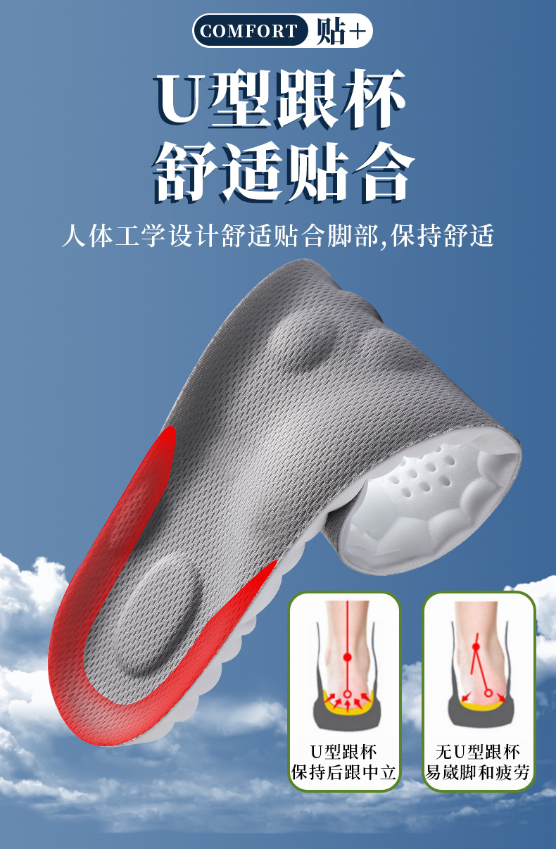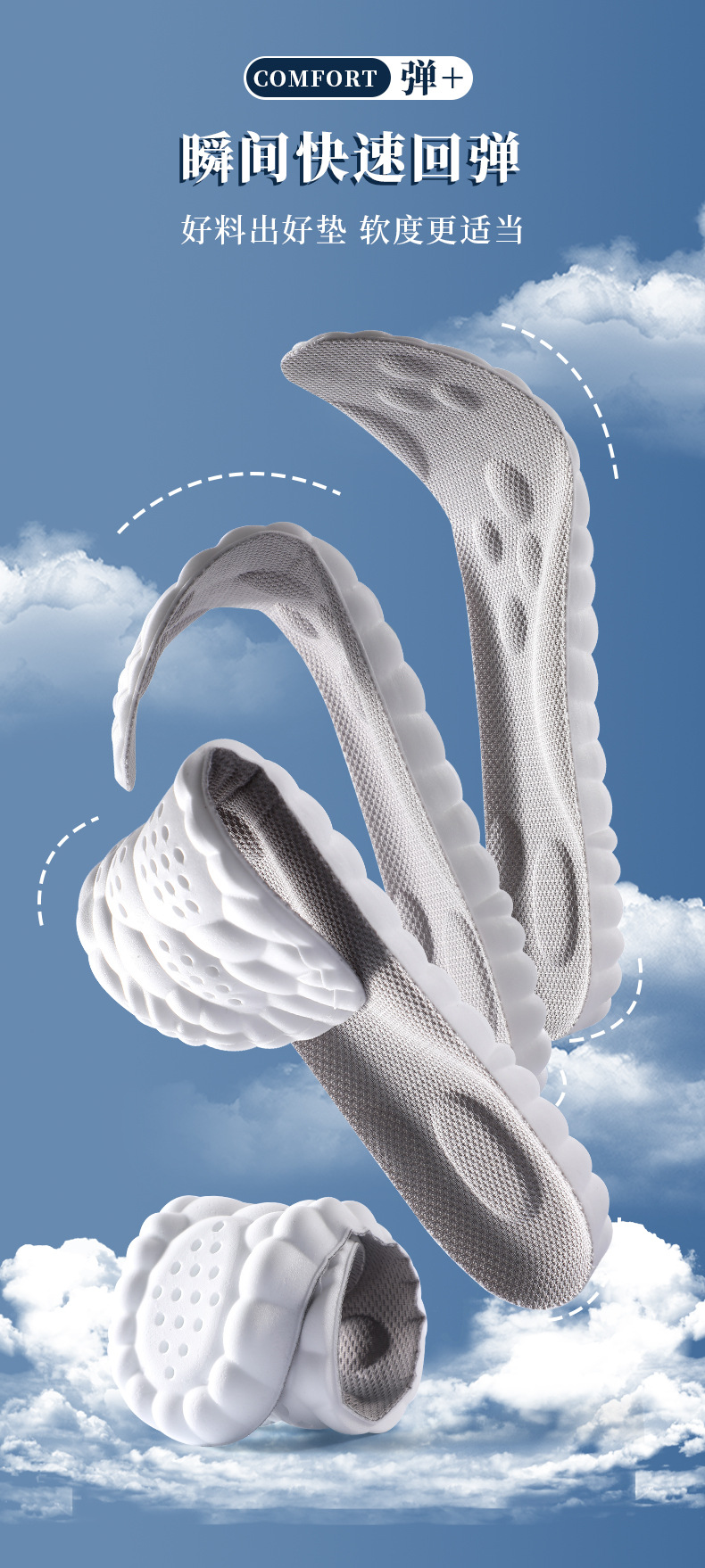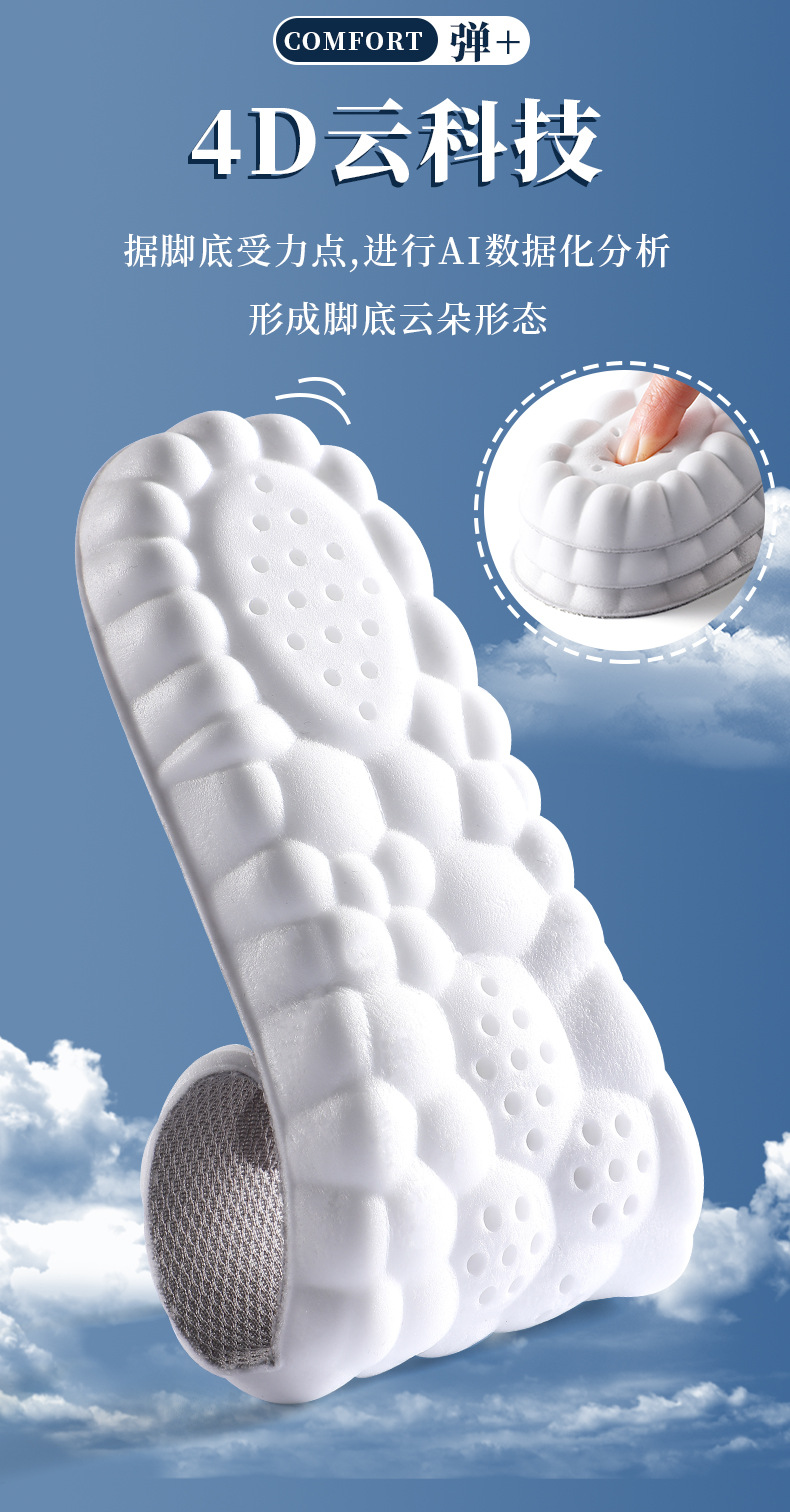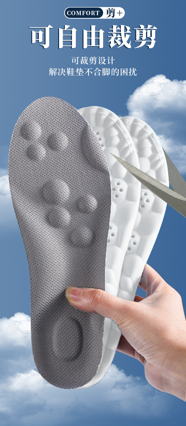 【比踩屎感还舒适】4D云科技pu按摩足弓鞋垫 足底云朵按摩 4D循环透气 运动高弹减震 可随意裁剪
