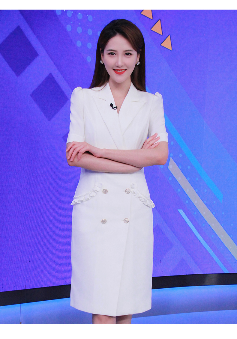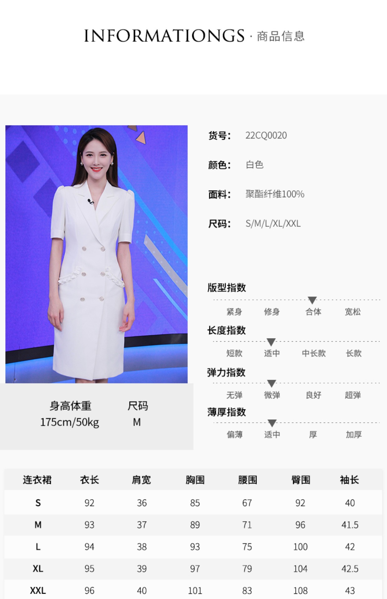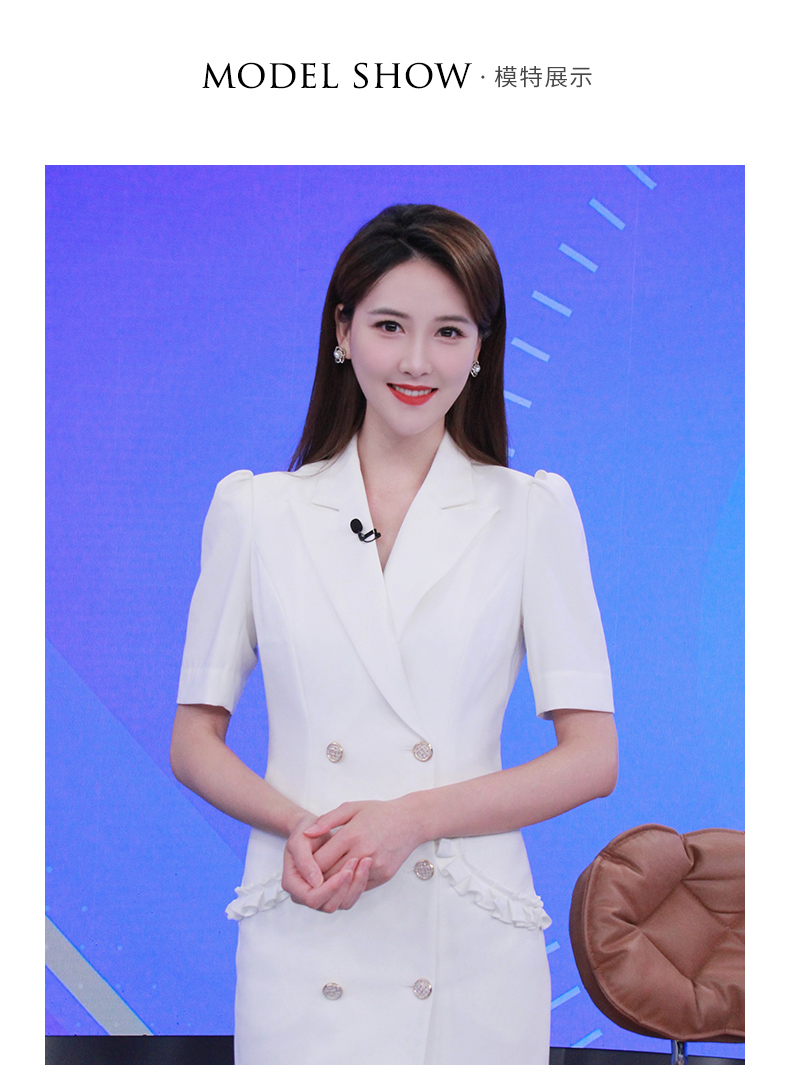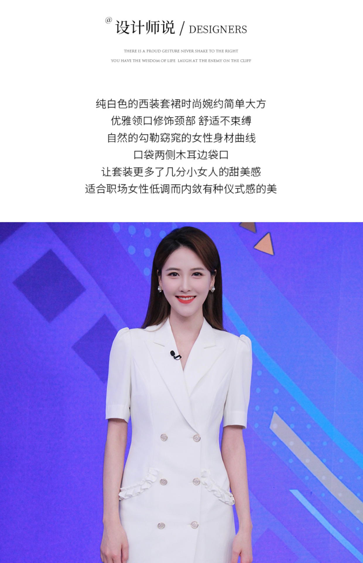 IWY/白色西装连衣裙女高级感夏季主持人正装艺考礼服演讲比赛职业裙女22CQ0020