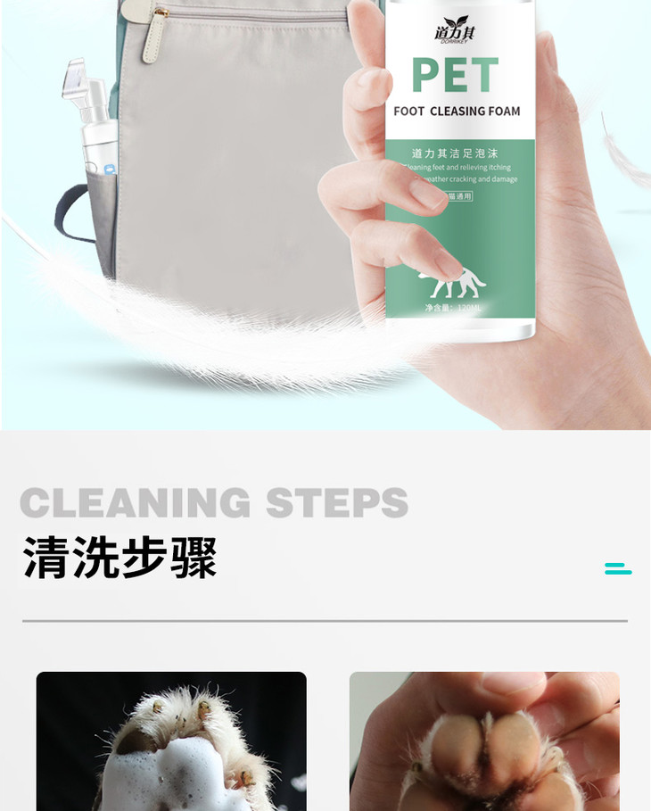 道力其宠物洁足泡沫150ml脚掌护理清洁除臭犬猫洗脚液