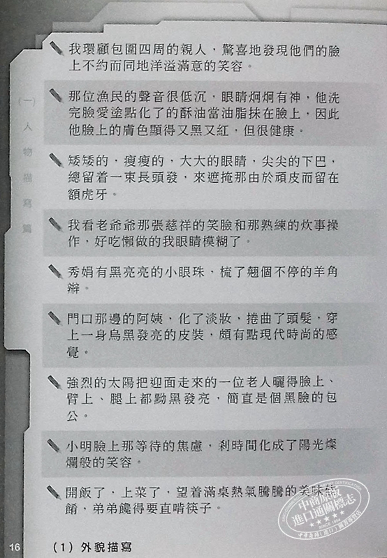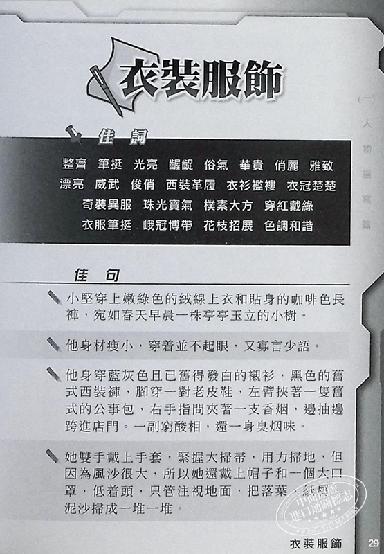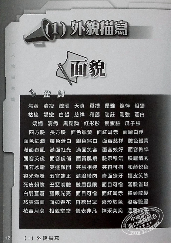 本书搜罗大量词语和句子,特点是分门别类,仔细条列各式写作材料的常见用词和经典佳句。
