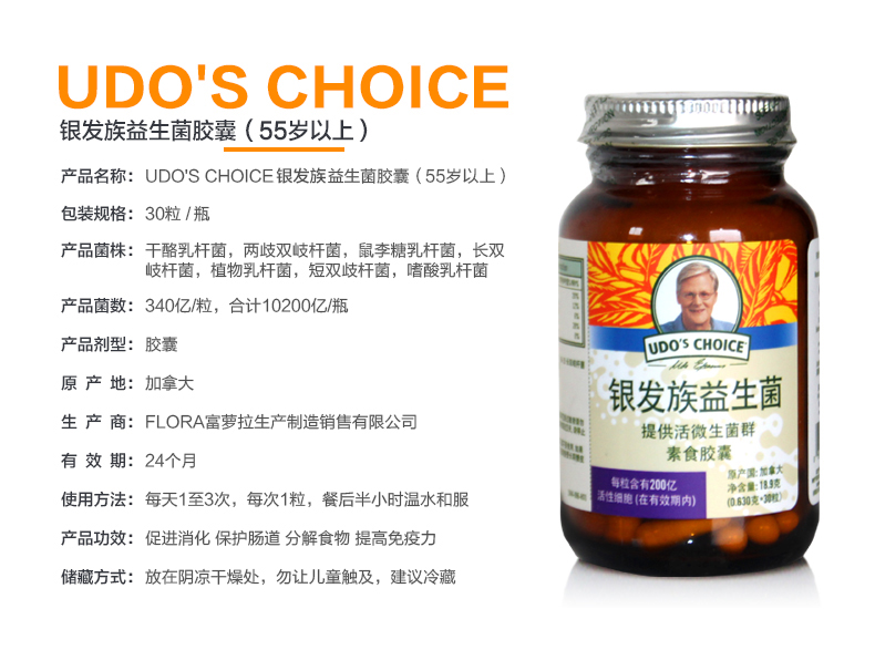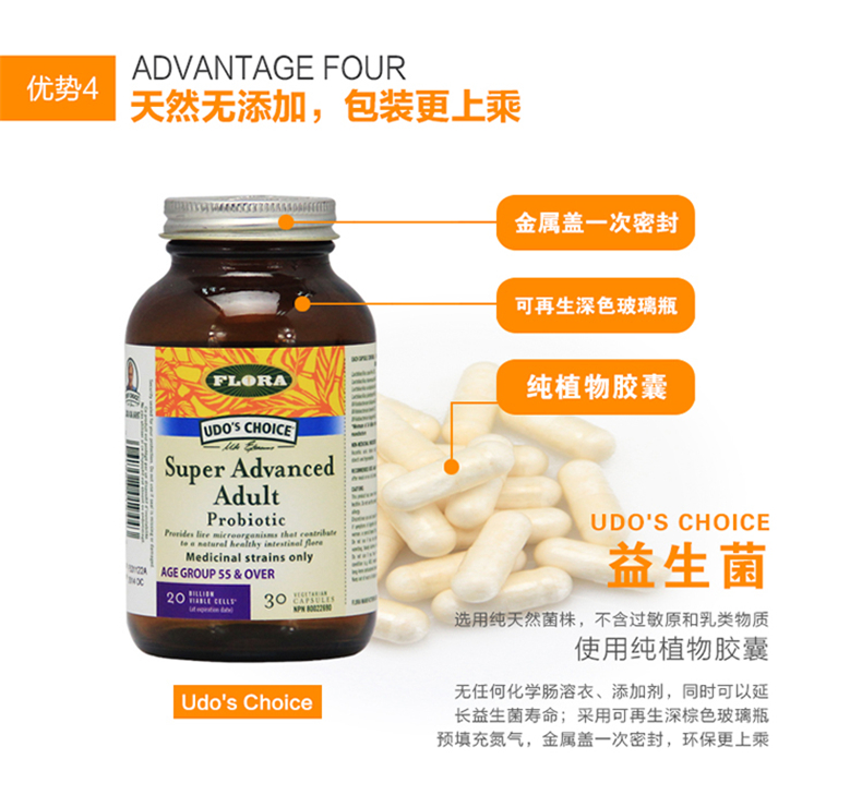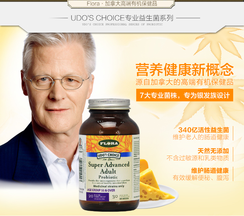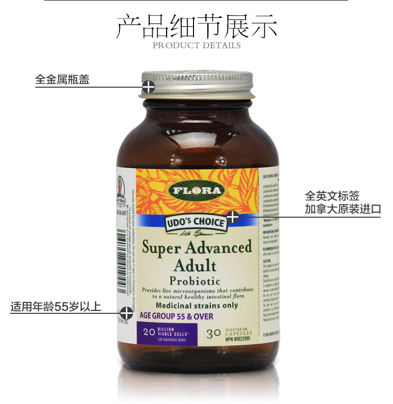 【中老年益生菌胶囊】FLORA 加拿大进口 肠胃健康 助力消化 30粒