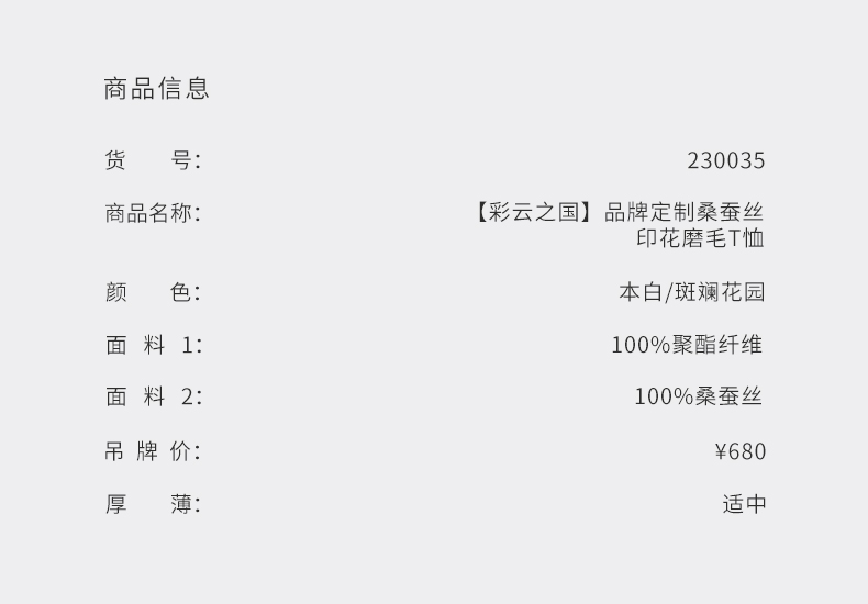 【彩云之国】品牌定制桑蚕丝印花磨毛T恤/230035