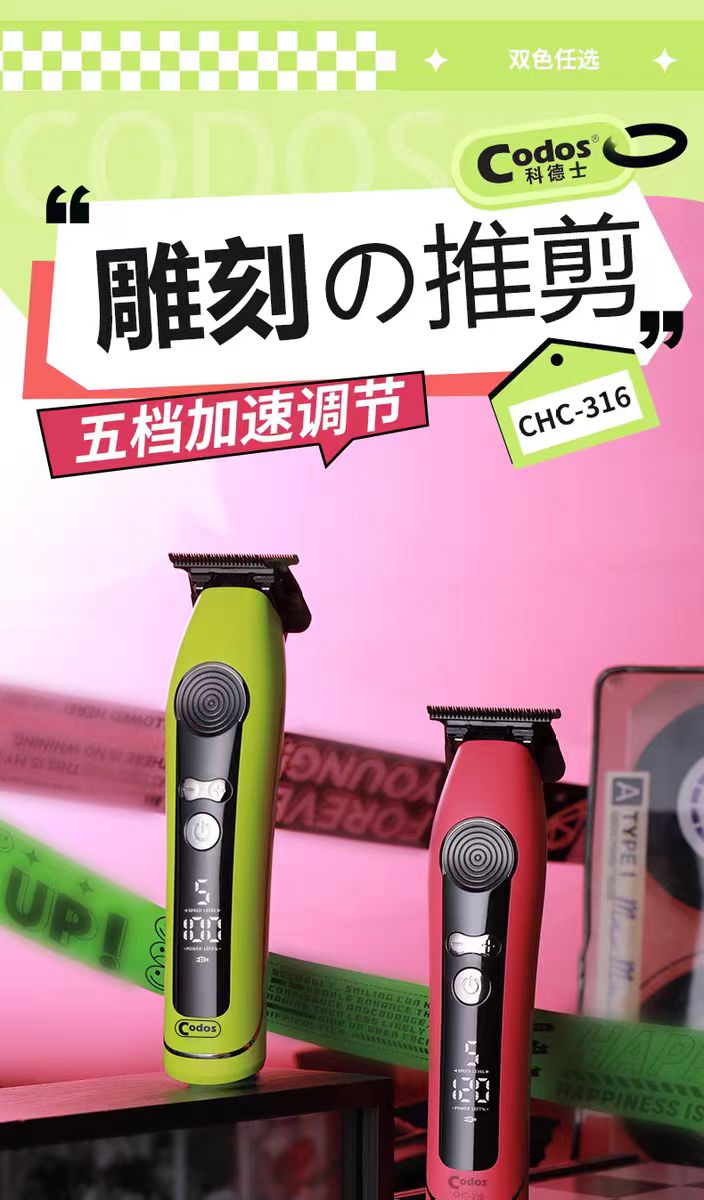 科德士CHC316青山绿/猛男粉/雕刻剪/专业雕刻修边渐变电动推剪理发器电动剃头推剪