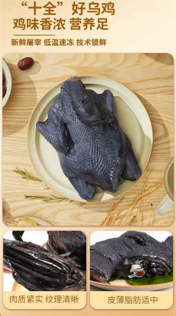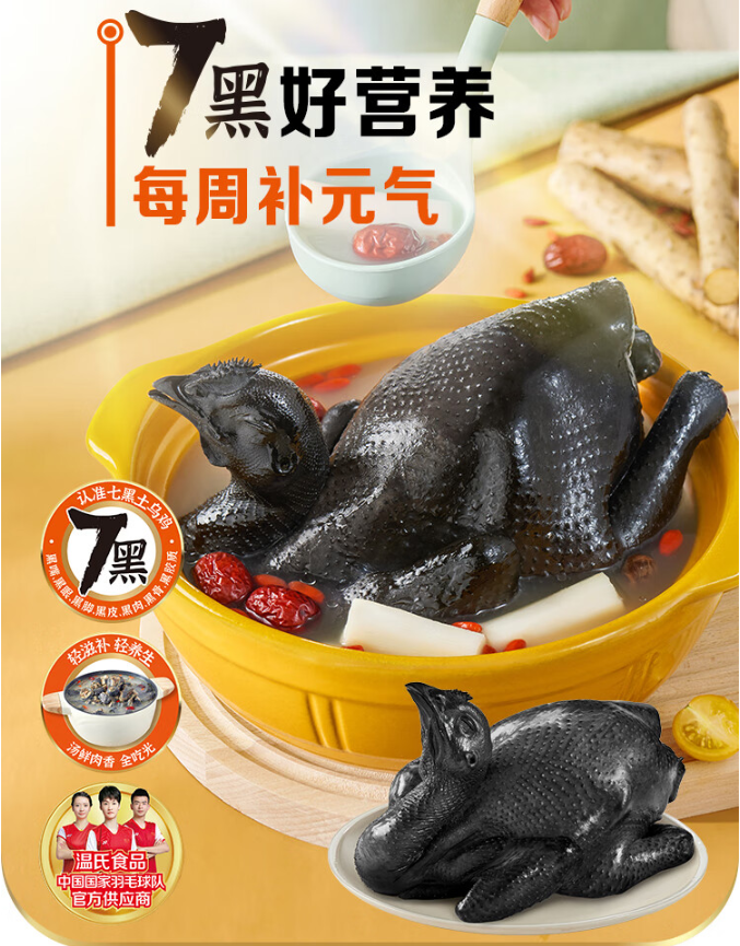 【顺丰发货】温氏 生态散养乌鸡*2只 约2斤/只 五谷饲喂 生态散养 低脂高蛋白 肉质鲜嫩