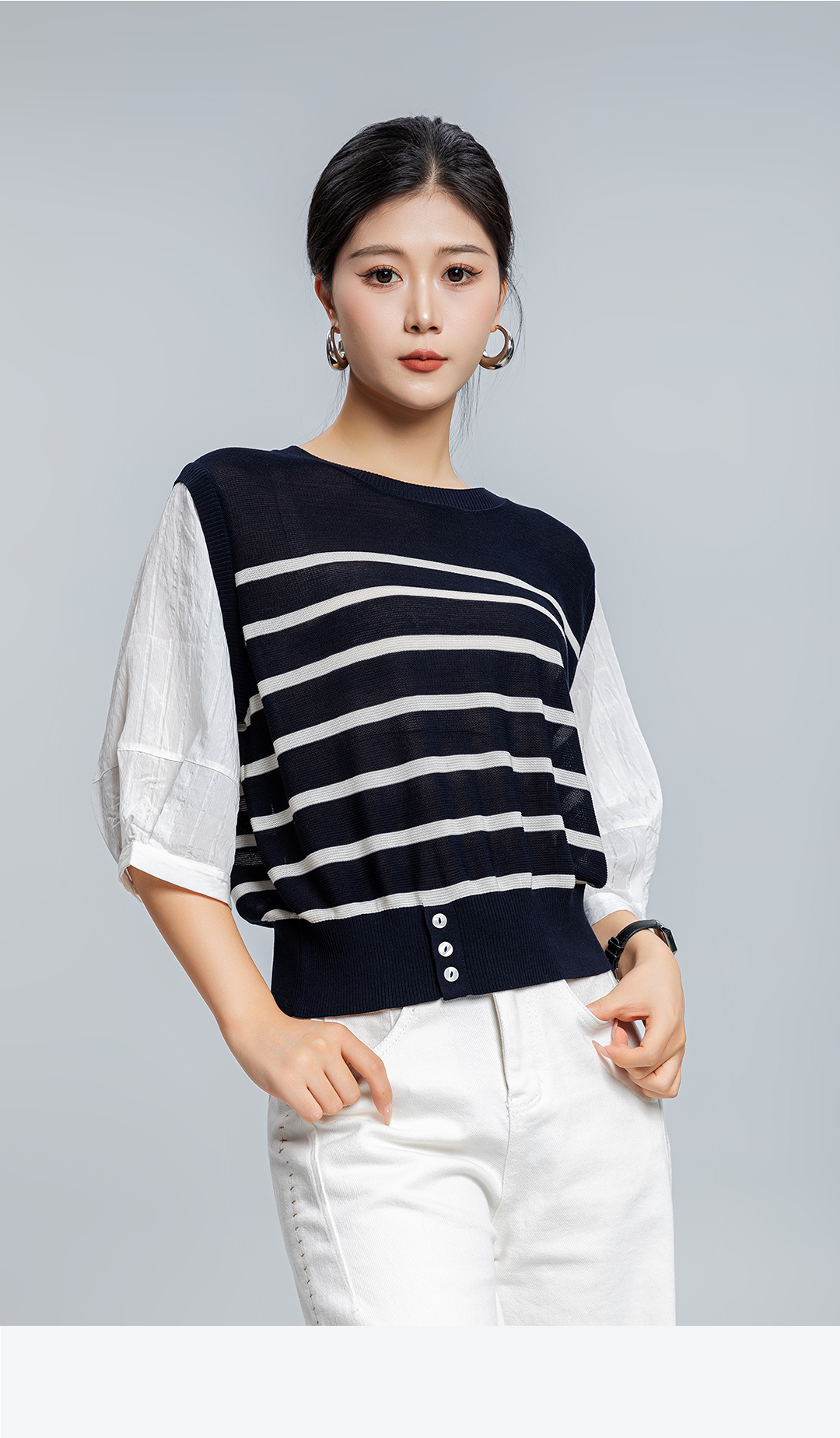 秋上新简约通勤风黑白条纹针织拼接针织衫1253090 商品图3