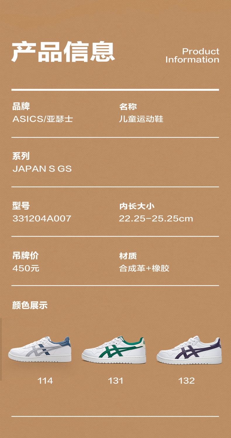 ASICS/亚瑟士童鞋男女防滑运动板鞋休闲百搭舒适轻便时尚