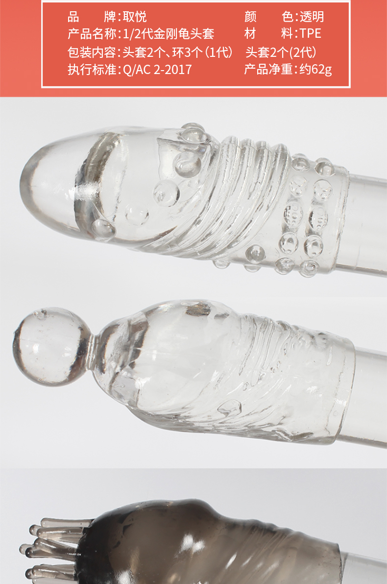 取悦 金刚龟头套男用环 狼牙套sm加长加粗男性持久锁精套环成人情趣性用品