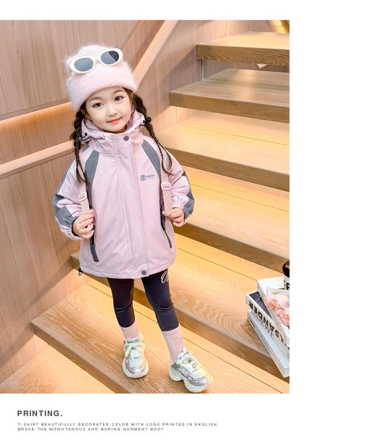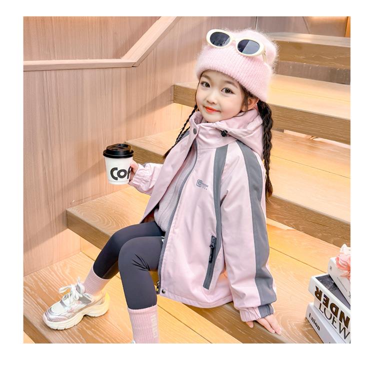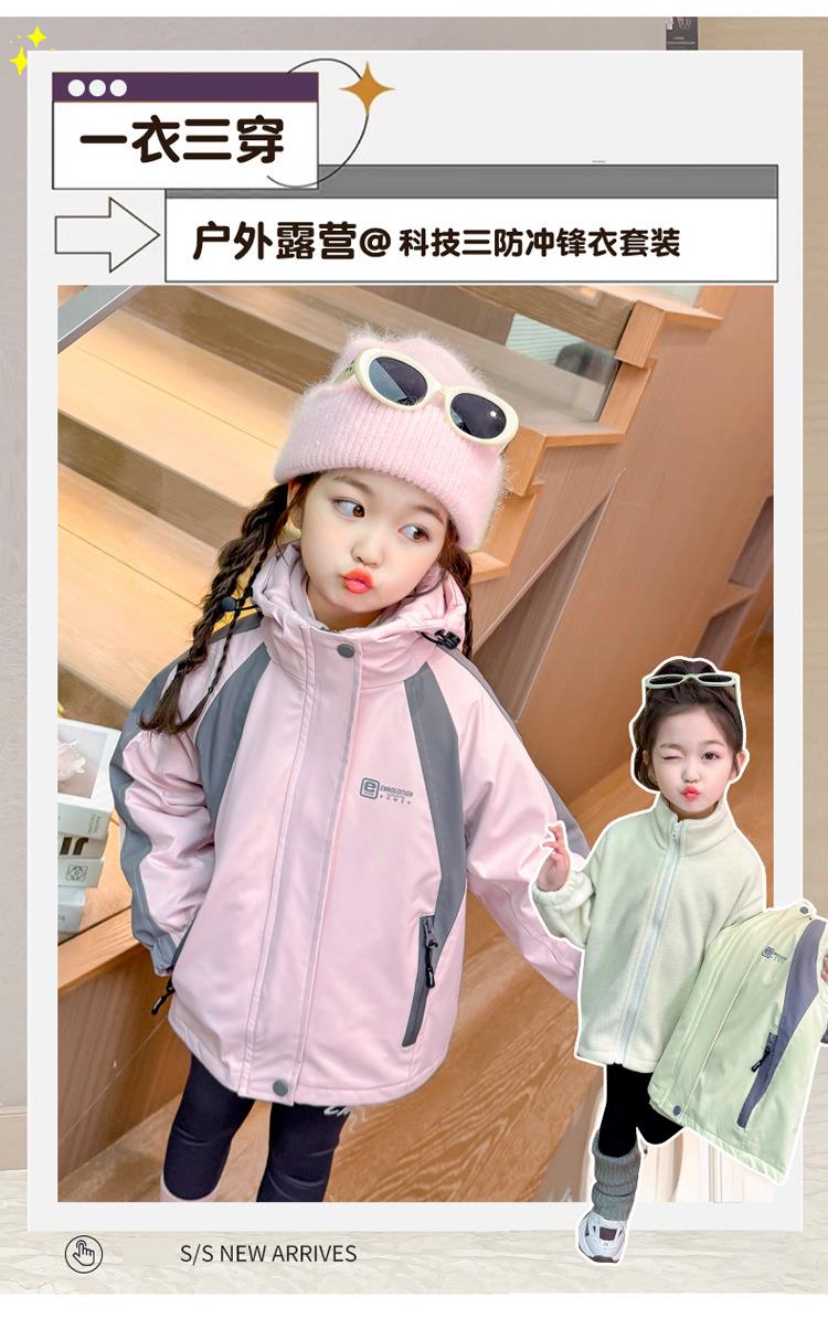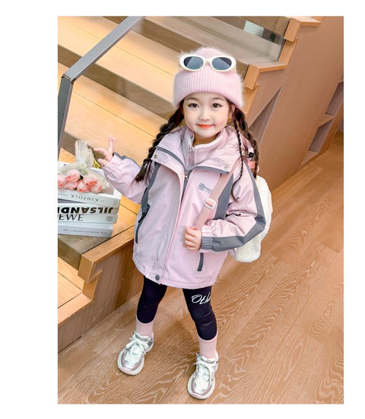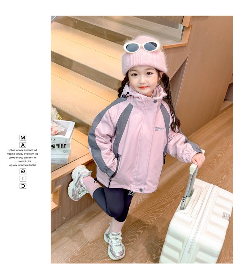 女童外套春秋款三合一2025新款儿童装两件套冲锋衣女宝连帽户外服