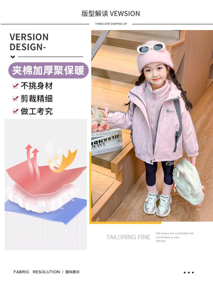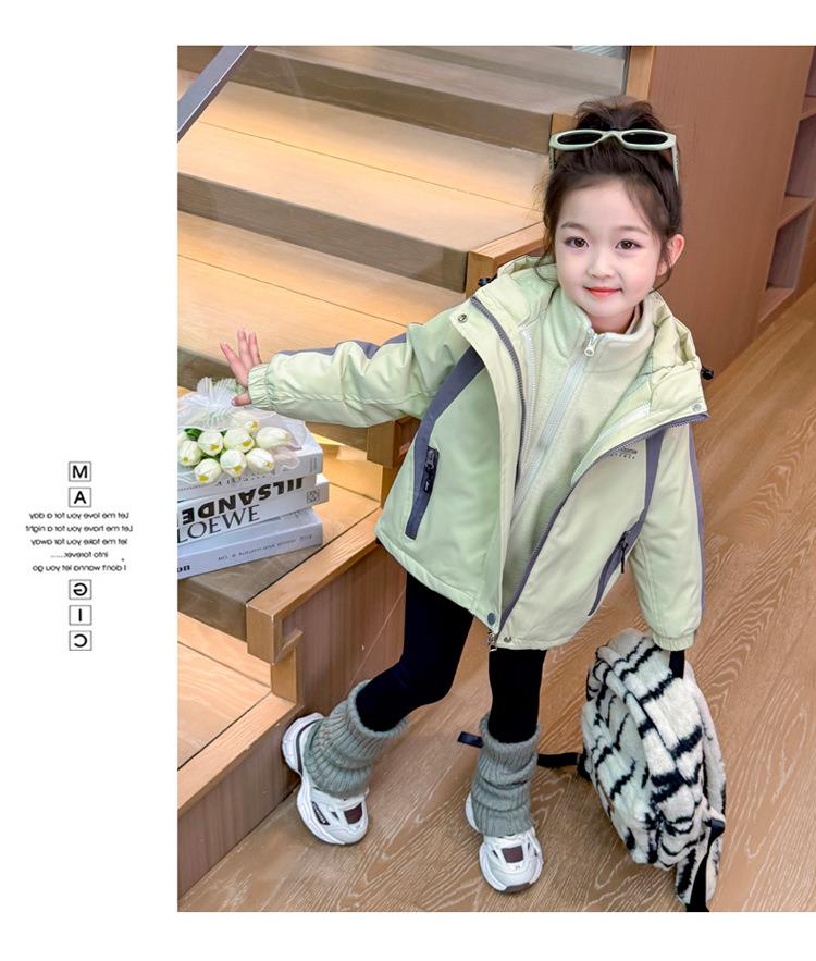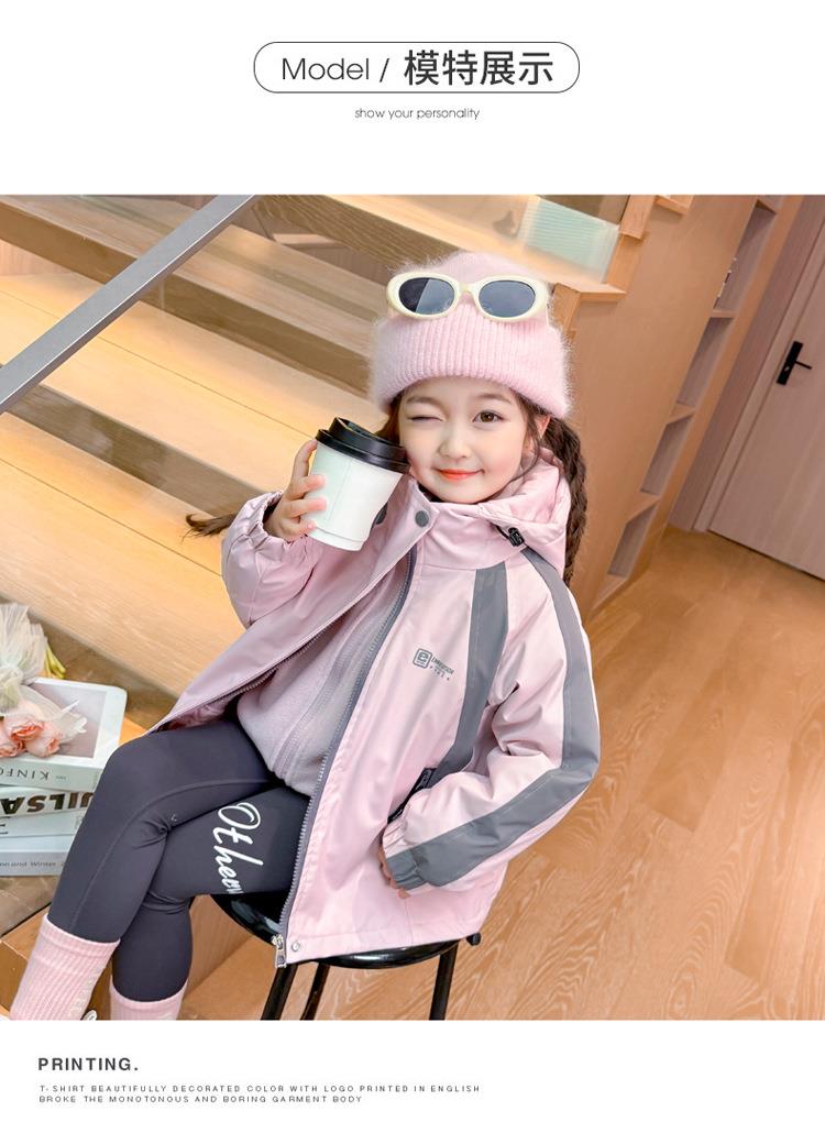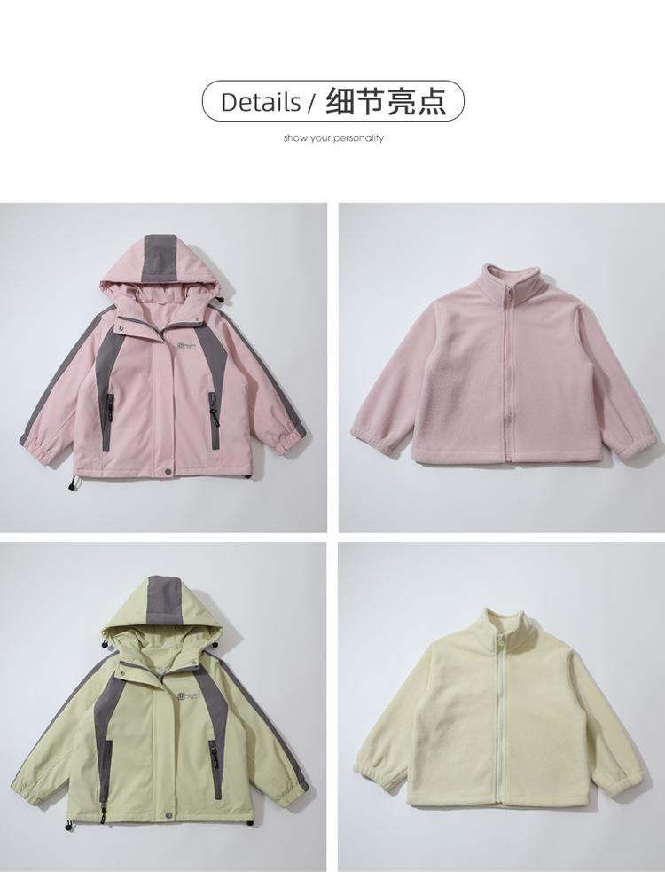 女童外套春秋款三合一2025新款儿童装两件套冲锋衣女宝连帽户外服